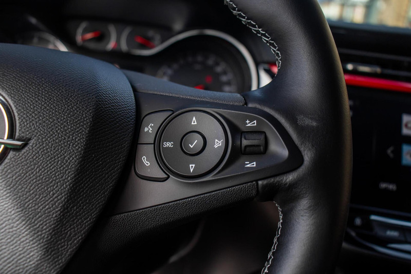 De Corsa is uitgevoerd in een sprekende rode lak, die perfect wordt gecombineerd met een contrasterend zwart dak en zwarte 17 inch lichtmetalen velgen. Deze kleurencombinatie geeft de GS Line een frisse, sportieve en moderne uitstraling. De scherpe lijnen van het ontwerp en de zwarte accenten zorgen ervoor dat deze compacte hatchback direct in het oog springt. Dankzij de parkeercamera manoeuvreert u bovendien moeiteloos in elk parkeervak.