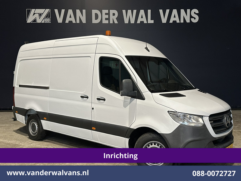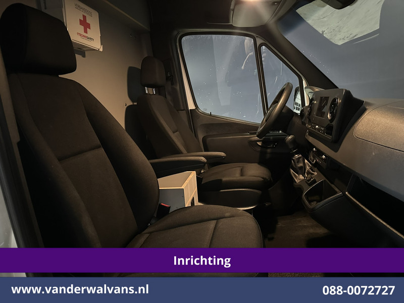 164pk sterke Sprinter L2H2 Euro6 met professionele inrichting en 3500kg Trekhaak. Geheel dealer onderhouden en tevens voorzien van airconditioning, camera, Apple Carplay, Android Auto, cruisecontrol, parkeersensoren en bluetooth telefoonvoorbereiding.