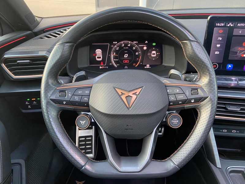 Prachtige Cupra Leon ST VZ. Uitgevoerd in de kleur Graphene Grijs, 19 inch lichtmetalen velgen, Brembo remmen en een panorama dak waardoor deze auto zeer sportief uitstraalt. Dat zien we vervolgens terug in het interieur welk is voorzien van sportieve schaalstoelen, digitaal cockpit en sfeerverlichting. Onder de motorkap bevindt zich een krachtige 2.0L motor welke een vermogen levert van 310pk. Dit vermogen word doormiddel van een DSG-automaat overgebracht op de vierwielaandrijving. Om het comfort te optimaliseren is de Cupra voorzien van adaptieve cruise controle, lane assist, dode hoekdetectie, achteruitrijcamera, grootlicht assistent, regensensor, apple carplay, Beats audio, elektrische achterklep en een elektrisch uitklapbare trekhaak.
