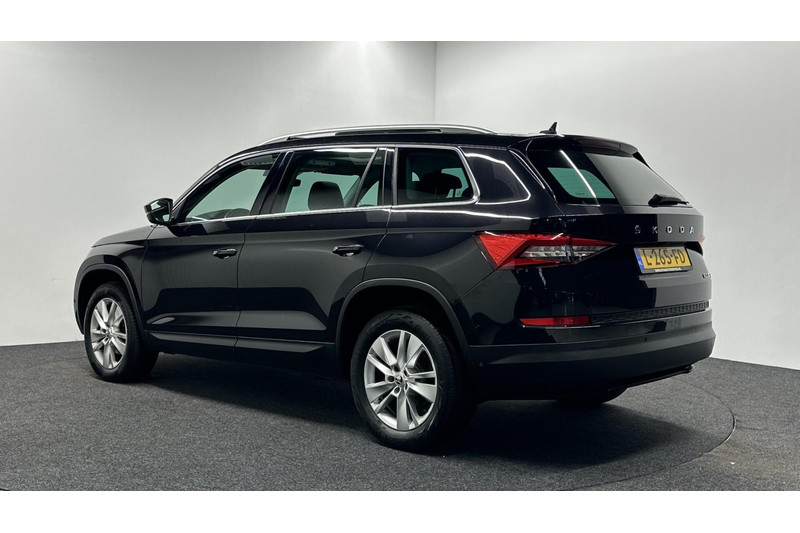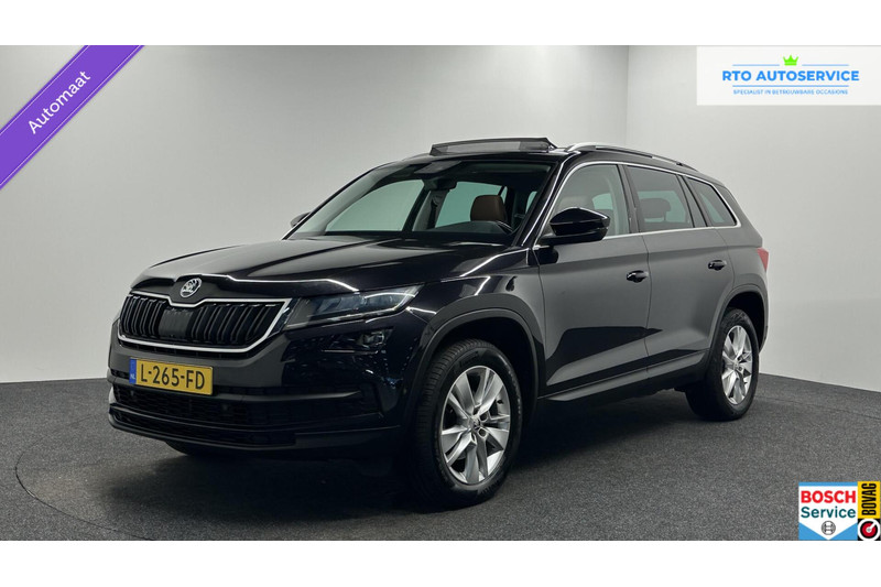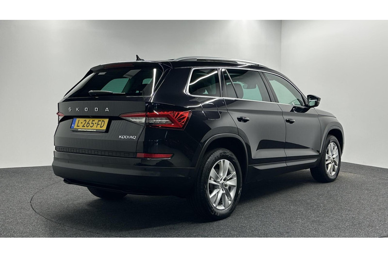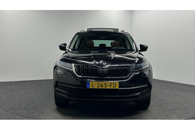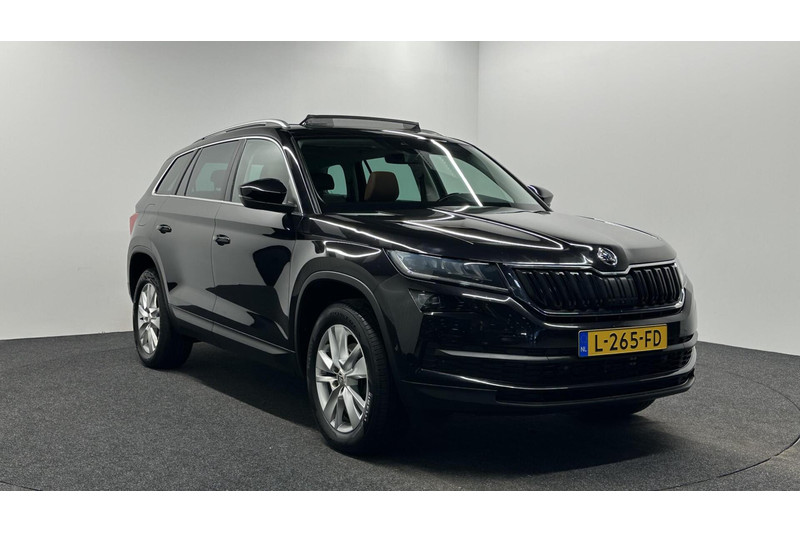 Rijden als nieuw? Dan is deze Skoda Kodiaq een fantastische buitenkans. Prille cijfers op de teller, piepjong ogend, verbluffend actueel in extra's en opties... Deze Skoda Kodiaq heeft het allemaal! Hij heeft een benzinemotor en een automatische transmissie. Misschien valt u voor het lederen interieur. Maar wat een licht van binnen ook, dankzij het elektrisch bediende glazen panorama dak; en niet te vergeten het grote gemak van een elektrisch bedienbare achterklep. Deze auto is ook voorzien van stoelverwarming. Met de verwarmbare achterbank zitten uw achterpassagiers er net zo behaaglijk bij als u. U wordt in deze auto ook getrakteerd op 18 inch lichtmetalen velgen, LED koplampen, halflederen bekleding, dakspoiler, donker getint glas achter en in delen neerklapbare achterbank.