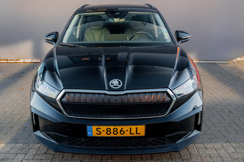 Hij levert uitstekende prestaties en doet dat met zorg voor het milieu. Maar tegelijk is de ŠKODA Enyaq iV ook gewoon een auto die u volop ruimte en comfort biedt. De fluisterstille elektromotor zorgt voor een serene rijervaring. Een krachtige motor geeft deze auto zijn sportieve prestaties. Topklasse: daar hoort leren bekleding absoluut bij. Ook 19 inch lichtmetalen velgen, LED koplampen, in hoogte verstelbare passagiersstoel, in delen neerklapbare achterbank, LED-achterlichten en verstelbare lendensteunen horen tot de voorzieningen op deze auto.