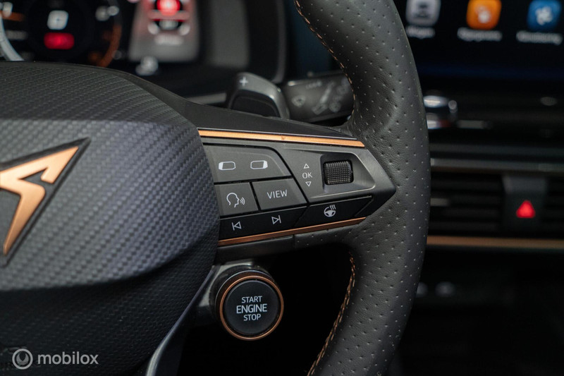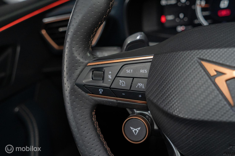 Met het digitale dashboard van deze auto is de aanpassing van uw cockpitinterface een fluitje van een cent. Nooit meer parkeerschade dankzij de achteruitrijcamera. Adaptive cruise control houdt de ingestelde snelheid vast en houdt automatisch afstand tot uw voorligger. Rijden-stilstaan, rijden-stilstaan. Niks is irritanter en vermoeiender dan filerijden. Daar heeft deze CUPRA Formentor een oplossing voor: de file assistent, die met radarmeting permanent het tempo aanpast op de voorligger. Zelfs als die stopt. Vanaf elke plek contact maken met deze auto: dat kan met behulp van remote services, die u simpel activeert met uw smartphone. De CUPRA is standaard voorzien van: dashboard met spraakbediening, Beats audio system, full map navigatiesysteem, electronic climate control, draadloos opladen en DAB ontvangst.
