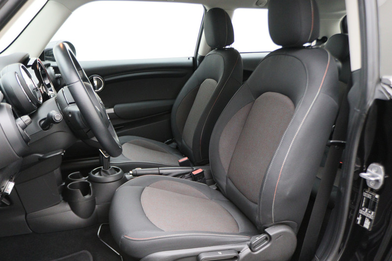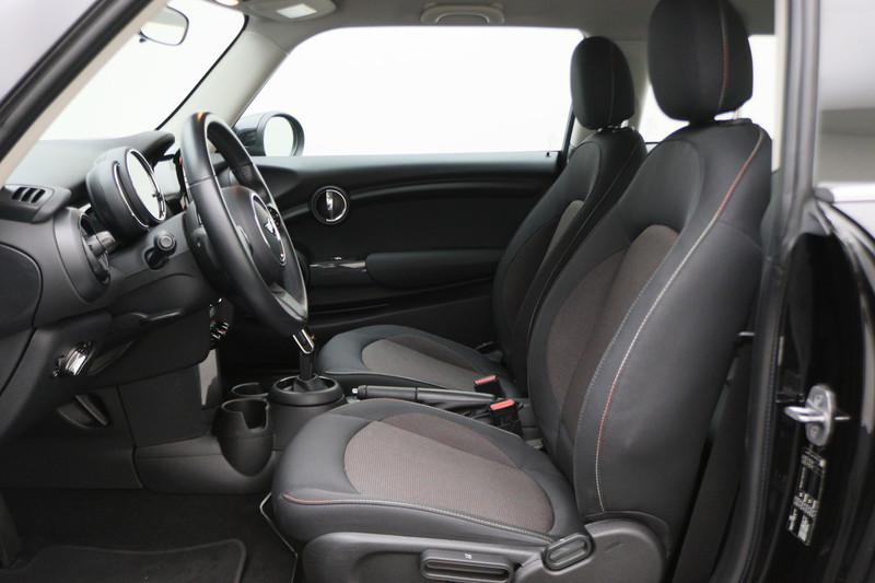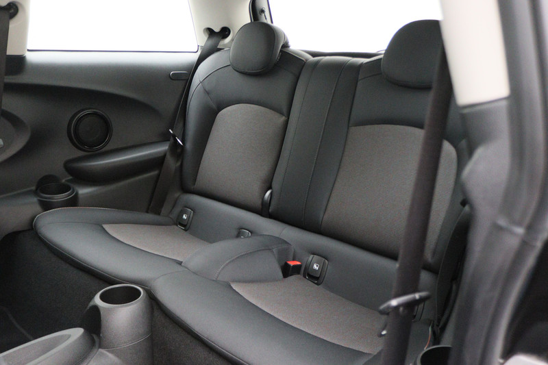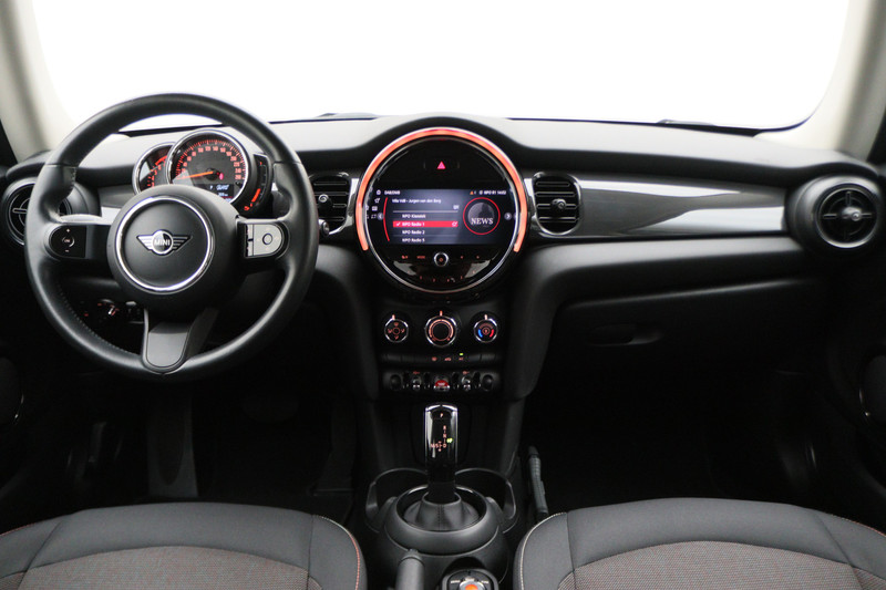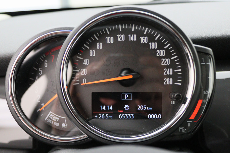 Knoppen voor audio-aanpassingen zijn onder direct handbereik met de audiobediening op het stuur. De DAB-ontvanger zorgt voor een ruime keuze uit digitale radiozenders en een kristalheldere geluidsweergave. Het drukke verkeer eist onderweg al uw aandacht op. Daarom is het goed dat deze MINI is voorzien van diverse systemen die u assisteren tijdens de rit. Een automatisch inschakelbare verlichting neemt het waar als het donker wordt of gaat schemeren, en schakelt dan automatisch de verlichting in. Op dezelfde manier "ziet" de regensensor de eerste spatjes regen en schakelt dan de ruitenwissers in, en als het harder gaat regenen zet hij de ruitenwissers ook in een snellere stand. Autosleutels overbodig. Deze MINI is voorzien van keyless start. In de zomer zorgt de airconditioning voor verkoeling. In het voorjaar en najaar voorkomt het systeem beslagen ramen. De uitrusting van deze MINI is met buitentemperatuurmeter, lederen stuur, isofix-aansluiting, usb-aansluiting, centrale deurvergrendeling met afstandsbediening en bagage afdekhoes compleet.