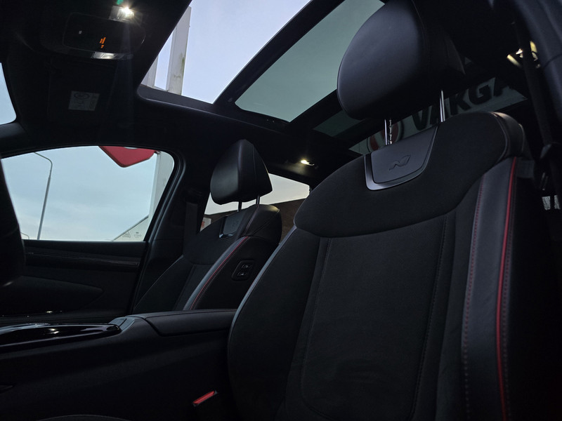 De N Line-uitvoering geeft de Tucson een sportieve uitstraling met strakke lijnen, een krachtige look en een interieur dat luxe en dynamiek uitstraalt. Zodra je instapt, voel je direct de kwaliteit en het oog voor detail. De panoramadak laat het interieur baden in licht, terwijl de verwarmde stoelen en het verwarmde stuur zorgen voor comfort op koude dagen. Dankzij het geheugen voor de bestuurdersstoel stap je altijd in met jouw ideale zitpositie.