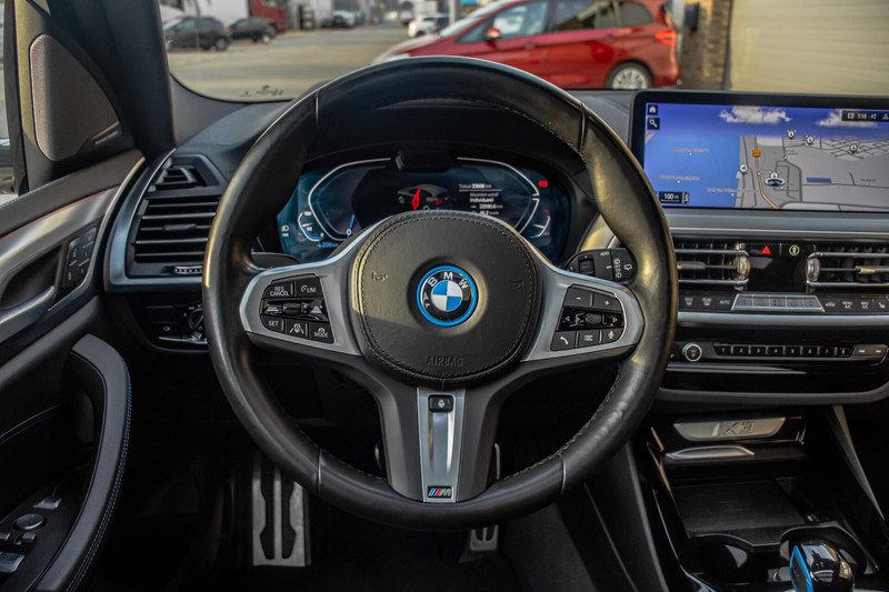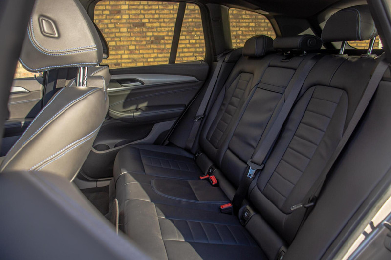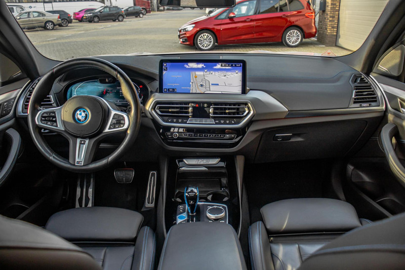 Binnenin biedt de iX3 een hoog niveau van comfort en afwerking. Het lederen interieur straalt luxe uit en is voorzien van elektrisch verstelbare stoelen met geheugenfunctie. Zowel de stoelen als het stuurwiel zijn verwarmd, wat het comfort in koudere maanden aanzienlijk verhoogt. De ambient verlichting draagt bij aan een prettige sfeer tijdens elke rit. Het Harman Kardon audiosysteem zorgt voor een uitstekende geluidsbeleving, terwijl Apple CarPlay, het digitale instrumentenpaneel en het overzichtelijke infotainmentsysteem zorgen voor moderne connectiviteit en gebruiksgemak.
