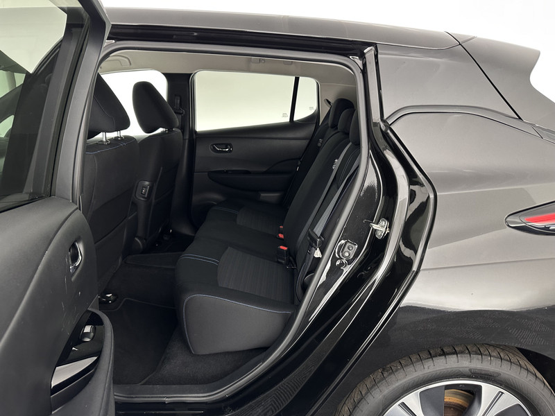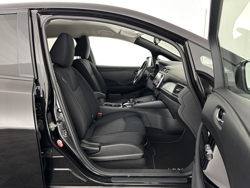 ⭐ Nissan LEAF N-Connecta 40 kWh in Black Metallic met eco-stof interieur en blauwe stiksels in grijs | Elektrisch, Comfortabel & Innovatief