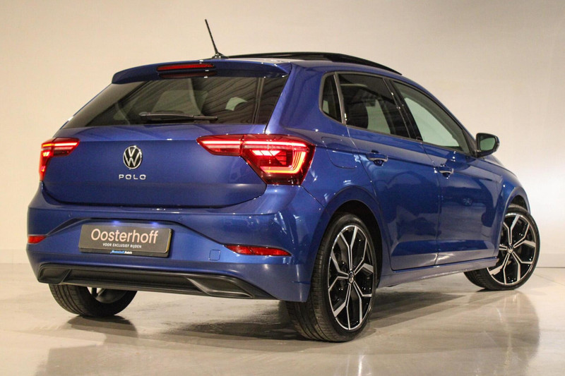 Opvallend complete Volkswagen Polo 1.0 TSI Business in Reef Blue, met panoramadak, sportieve looks en luxe opties.