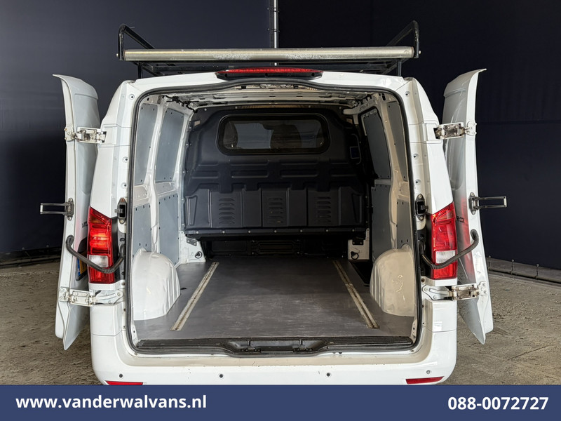 164pk sterke Mercedes-Benz Vito L2H1 Euro6 met airconditioning en imperiaal. Deze bedrijfswagen is top onderhouden en uitgevoerd met lichtmetalen velgen, AMG, LED, cruisecontrol, lederen bekleding, parkeersensoren, stoelverwarming, bijrijdersbank en bluetooth telefoonvoorbereiding.