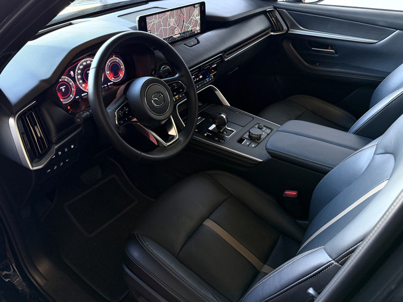 De Mazda CX-60 Homura heeft dankzij extra voorzieningen een sportieve uitstraling. De stoelen van zwart leder, de sfeerverlichting en vloerverlichting achterin maken het interieur zo aantrekkelijk dat je altijd weer graag achter het stuur wilt kruipen.