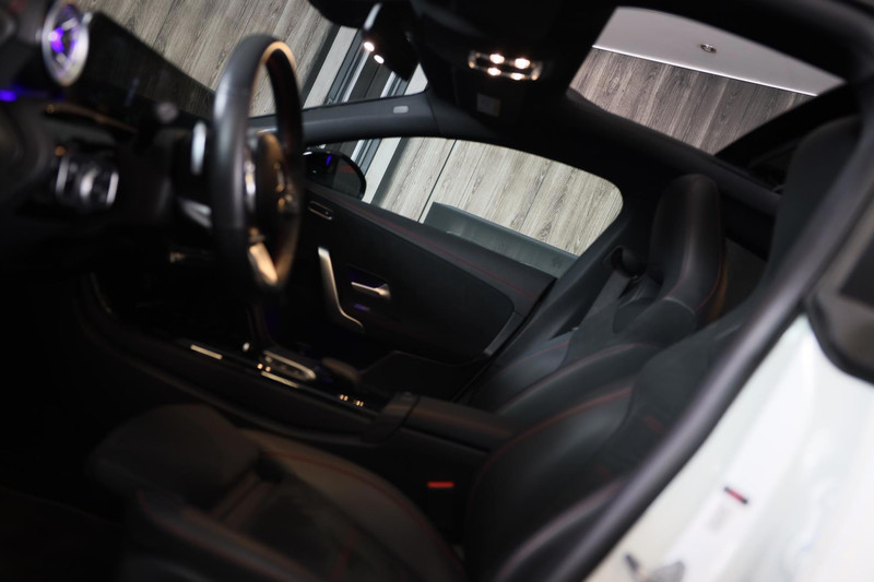 Van een auto mag u het nodige verwachten, vinden ze bij Mercedes. Topkwaliteit in alle opzichten, vandaar de slogan ‘The best or nothing'. Hier ziet u een perfect voorbeeld. AMG Line Exterieur benadrukt de sportieve functionaliteit van het ontwerp. Een krachtige motor geeft deze auto zijn sportieve prestaties. Elke rit in deze Mercedes-Benz CLA-klasse heeft een tikje meer, dankzij het lederen interieur. U past de stoelen moeiteloos aan, ze zijn elektrisch in te stellen en hebben bovendien een geheugen. Volop licht en ruimtelijk gevoel geeft het elektrische bediende glazen panoramadak. Met de krachtige xenonverlichting rijdt u ontspannen in het donker. De uitmonstering van deze auto wordt gecompleteerd door onder meer 19 inch lichtmetalen velgen, sportonderstel, extra getint glas, AMG-stijl sportinterieur, zwarte hemelbekleding, LED-achterlichten, verstelbare lendensteunen, metallic lak, elektrisch inklapbare buitenspiegels, LED-dagrijverlichting en in delen neerklapbare achterbank.