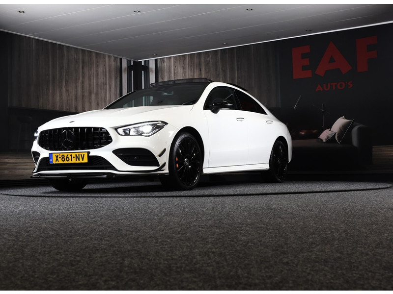 Van een auto mag u het nodige verwachten, vinden ze bij Mercedes. Topkwaliteit in alle opzichten, vandaar de slogan ‘The best or nothing'. Hier ziet u een perfect voorbeeld. AMG Line Exterieur benadrukt de sportieve functionaliteit van het ontwerp. Een krachtige motor geeft deze auto zijn sportieve prestaties. Elke rit in deze Mercedes-Benz CLA-klasse heeft een tikje meer, dankzij het lederen interieur. U past de stoelen moeiteloos aan, ze zijn elektrisch in te stellen en hebben bovendien een geheugen. Volop licht en ruimtelijk gevoel geeft het elektrische bediende glazen panoramadak. Met de krachtige xenonverlichting rijdt u ontspannen in het donker. De uitmonstering van deze auto wordt gecompleteerd door onder meer 19 inch lichtmetalen velgen, sportonderstel, extra getint glas, AMG-stijl sportinterieur, zwarte hemelbekleding, LED-achterlichten, verstelbare lendensteunen, metallic lak, elektrisch inklapbare buitenspiegels, LED-dagrijverlichting en in delen neerklapbare achterbank.