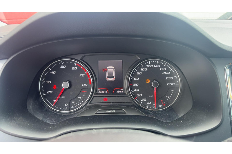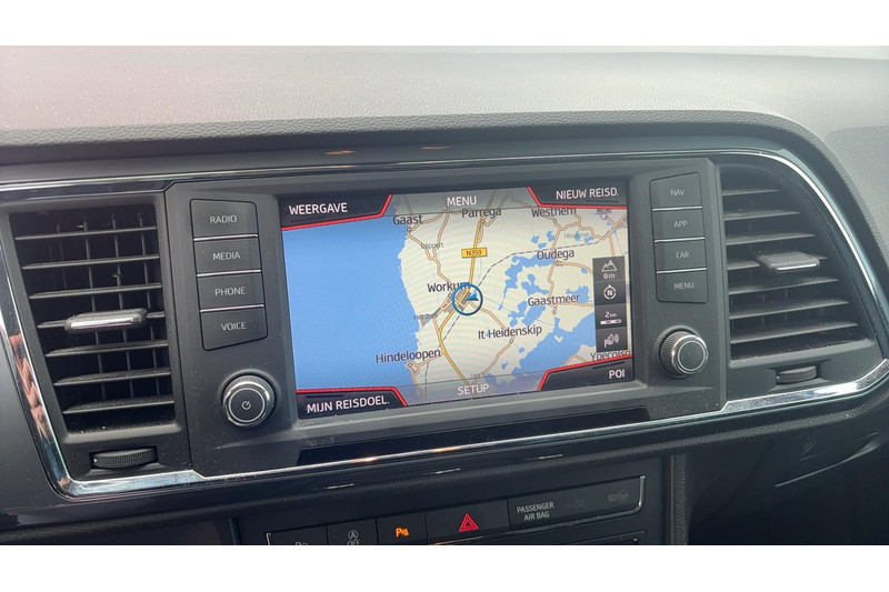 De achteruitrijcamera laat duidelijk zien hoeveel ruimte u nog heeft bij het inparkeren. Uw veiligheid op de weg wordt verhoogd door het audio-installatiesysteem met DAB-ontvangst en het full map navigatiesysteem te bedienen vanaf het stuur of met spraakbediening, zodat uw handen veilig op het stuur blijven en uw ogen gericht zijn op de weg. U verwacht natuurlijk automatische airconditioning in deze auto, en die is er dan ook. Achter het stuur van deze SEAT bent u niet alleen. De auto kijkt als het ware met u mee tijdens de rit. De regensensor schakelt de ruitenwissers in als het nodig is en de automatisch inschakelbare verlichting doet de lichten voor u aan. De cruise control zorgt voor zorgeloos, ontspannen en zuinig rijgedrag. Met buitentemperatuurmeter, automatisch dimmende binnenspiegel, lederen stuur, isofix-aansluiting, centrale deurvergrendeling met afstandsbediening en bagage afdekhoes is deze auto helemaal compleet.