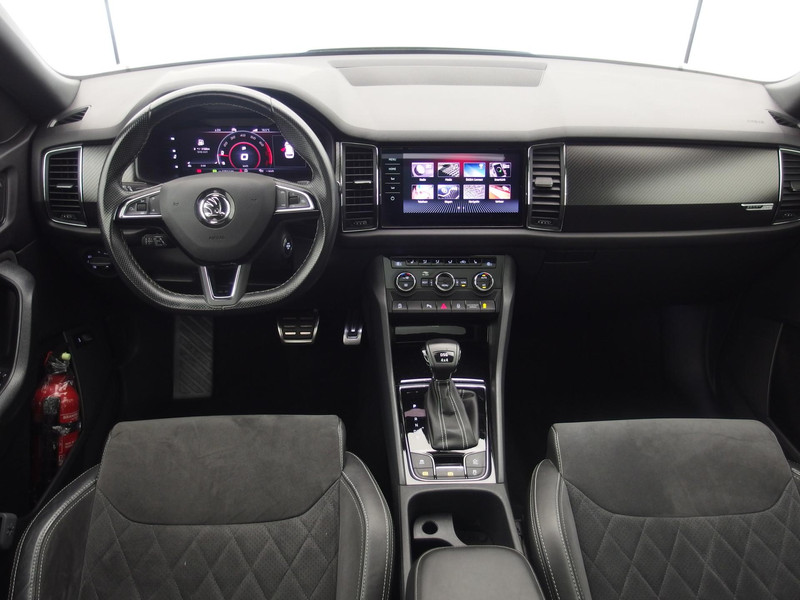 Goede prestaties, aantrekkelijke extra's en perfect onderhouden: deze ŠKODA Kodiaq stelt zich graag aan u voor! In deze auto vindt u een benzinemotor en een automatische transmissie. Deze ŠKODA Kodiaq heeft verwarmbare voorstoelen, voor zowel bestuurder als bijrijder. De sportstoelen houden u en uw bijrijder goed op z'n plek tijdens het accelereren en bij het nemen van scherpe bochten. Voel die ruimte eens! Lekker veel licht door het elektrisch bediende glazen panoramadak. Met een druk op de knop gaat de elektrische achterklep open. Afzien is er bij deze ŠKODA Kodiaq niet bij. Zelfs achterin vinden we de verwarmde achterbank. Bij de zeer complete uitrusting van deze auto behoren ook 20 inch lichtmetalen velgen, LED koplampen, adaptief dempingsysteem, zwarte hemelbekleding, dakspoiler en donker getint glas achter.