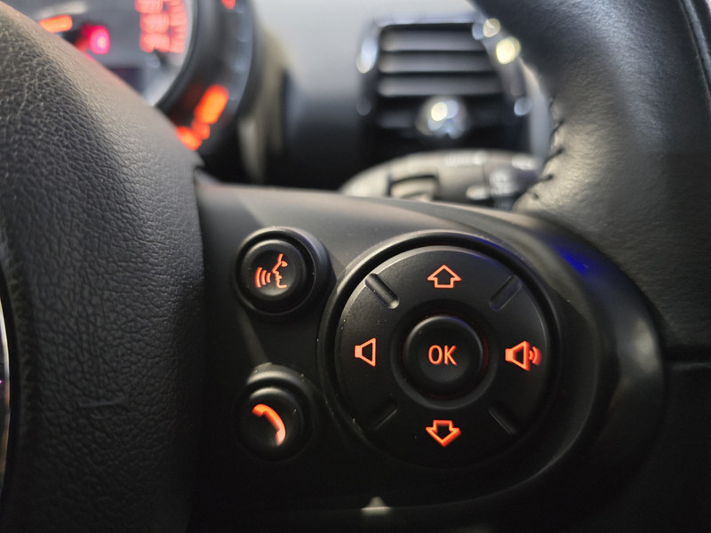 Het navigatiesysteem met harde schijf brengt u soepel en vlot naar uw bestemming. De automatische airconditioning zorgt voor een behaaglijk klimaat in de auto. Ogen op de weg, handen aan het stuur. De audiobediening op het stuur zorgt dat u probleemloos schakelt tussen zenders. Kom-maar-kom-maar...ho! Zo eenvoudig is het voordeel van parkeersensoren. En zo behulpzaam! Het luxeniveau in deze Mini is niet alleen gericht op comfort, maar ook op uw veiligheid. Tal van sensoren helpen u om de omgeving in de gaten te houden. De automatisch inschakelbare verlichting zorgt dat automatisch de verlichting wordt ingeschakeld als het donker wordt, wat bijvoorbeeld in tunnels erg handig is. En de regensensor zet de ruitenwissers aan zonder dat u eraan hoeft te denken. U bent in deze Mini ook voorzien van cruise control, sportstuurwiel, keyless entry, automatisch dimmende binnenspiegel en boordcomputer.