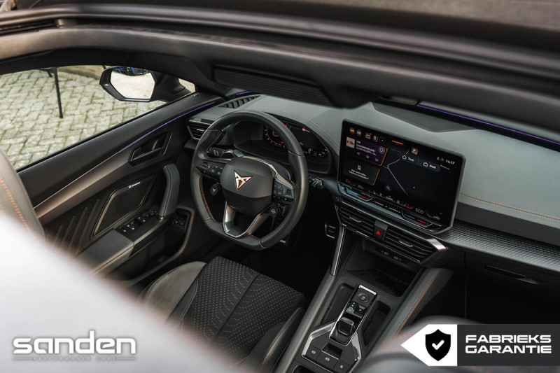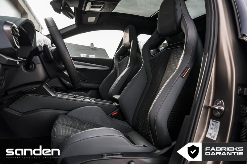 Deze CUPRA Formentor VZ Extreme is uitgevoerd in een opvallend sportieve en zeer complete configuratie. De 272 pk sterke e-Hybrid aandrijflijn combineert krachtige prestaties met moderne efficiëntie en een volledig elektrisch rijbereik tot wel 125km, terwijl de VZ Extreme-uitvoering deze Formentor onderscheidt door zijn uitgesproken design en sportieve afstemming. De Bronze accenten, Sabelt CUP-kuipstoelen met Carbon achterzijde en Brembo Performance-remmen onderstrepen het performance-karakter van dit exemplaar.