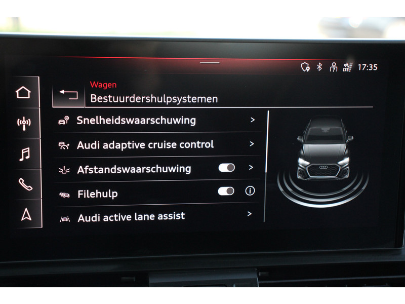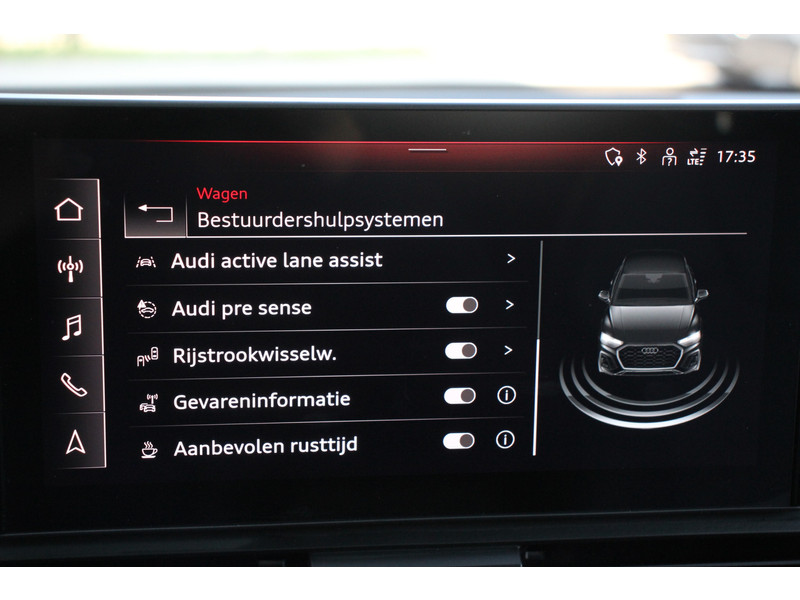 Geavanceerde veiligheidssystemen kijken tijdens elke rit met u mee en schatten continu de risico's in. De actuele snelheidslimiet, een inhaalverbod en andere verkeersborden; de verkeersborddetectie ondersteunt u tijdens elke rit. Met het Lane-keeping systeem gaat u nooit onbedoeld over de streep. De forward collision warning reduceert het gevaar van een botsing met een voorligger significant. Bovenop deze veiligheidsfeatures heeft deze Audi bovendien dodehoekdetectie, hill hold functie, brake assist en bandenspanningcontrolesysteem.