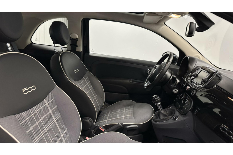 Van uw nieuwe auto verlangt u rijplezier, maar ook optimaal comfort en veiligheid. Daarom is de Fiat 500 de auto die u zoekt. De benzinemotor koppelt soepele prestaties aan een gunstig brandstofverbruik. Het interieur lijkt groter en ruimtelijker dankzij het elektrisch bedienbare glazen panoramadak. Natuurlijk behoren 15 inch lichtmetalen velgen, LED-dagrijverlichting en in delen neerklapbare achterbank ook tot de uitrusting van deze complete auto.