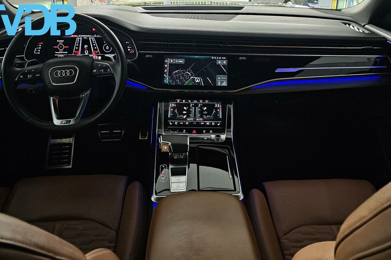 Fantastische Audi RS Q8 4.0 TFSI 600PK QUATTRO BLACK EDITION in de geweldige Audi kleur Mythos Zwart metallic, auto voorzien van zeer veel opties, RS- Exterieur, Audi RS Interieur, RS stuur met flippers, RS VOL-LEDER sportstoelen Kuipstoelen met massage functie elektrisch verstelbaar beide kanten met logo in de stoelen en MEMORY Functie, RS-DYNAMIKPAKET, RS-Komfortpakket, RS-Sportuitlaat, RS-Sportonderstel, S-Tronic Automaat, Navigatie MMI Plus, Audi Virtual Cockpit, ACC Adaptieve Cruise Control, Audi Front Assist, Audi Active Lane Assist, Audi Side Assist, Audi Exclusive Black Optik Pakket met zwarte logo's voor en achter, Audi Drive Select met RS Mode, BANG&OLUFSEN Soundsystem met subwoofer, KERAMISCHE REMMEN, CARBON Interieur delen, HEADUP-DISPLAY, Draadloos opladen, CARPLAY, Elektrisch Panoramadak, LASER Matrix Led Koplampen met licht animatie en dynamische knipperlichten, Ambiance verlichting uitgebreid meerdere kleuren, KEYLESS, Led achterlichten met dynamische knipperlichten en licht animatie, SOFTCLOSE, Parkeer sensoren voor en achter inclusief achteruitrijcamera en automatisch inparkeren, Elektrisch verstelbare en verwarmbare inklapbare buitenspiegels, Elektrische Achterklep, Climate Control 3 zones, Stoelverwarming voor en achter, Stoelverkoeling, Quattro 4x4, Zwarte Hemel, 23 inch Audi RS zwarte velgen origineel!!!
