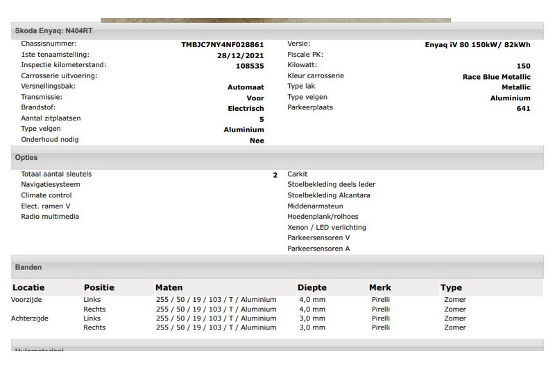 Het kan echter voorkomen dat uit de automatische voertuiginformatie een optie of accessoire naar voren komt die helaas toch niet op de auto aanwezig is.