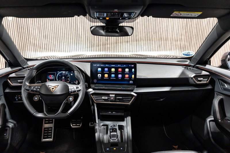 U rijdt gemakkelijk, comfortabel en zonder zorgen met deze Cupra Formentor. De aandrijving van deze Cupra wordt verzorgd door een viercilinder motor en een automatische transmissie. Deze Cupra Formentor heeft verwarmbare voorstoelen, voor zowel bestuurder als bijrijder. Natuurlijk zijn de sportstoelen super functioneel als het rechterpedaal ingetrapt wordt. Maar ook voor het uiterlijk doen ze veel! Daglicht valt vrij binnen door het elektrisch bediende glazen panoramadak. Een praktische extra is de elektrisch bedienbare achterklep die opent en sluit met een druk op de knop. Als de 'r' in de maand zit, komt zo'n verwarmd stuurwiel als geroepen! Verder is de Cupra uitgerust met: LED koplampen, extra getint glas, in delen neerklapbare achterbank, LED-achterlichten, verstelbare lendensteunen en snelheidsafhankelijke stuurbekrachtiging.