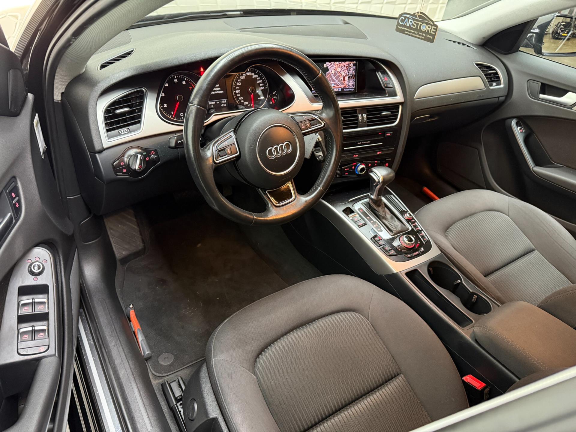 Een optie die de veiligheid verhoogt, is de bediening vanaf het stuur van het audio-installatiesysteem en het origineel navigatiesysteem. Nooit meer te warm of te koud. De automatische airconditioning zorgt altijd voor de temperatuur die u kiest. De meeste schade bij inparkeren komt van een randje of paaltje dat u even niet zag. Maar de parkeersensoren zien alles en waarschuwen op tijd. Het hoort bij een intelligente auto als deze dat hij zelf in staat is om zijn omgeving in de gaten te houden. Dat doet deze Audi met een automatisch inschakelbare verlichting en een regensensor. Er is ook cruise control aan boord, om met een constant tempo ontspannen en zuinig te rijden. Deze Audi is voorzien van buitentemperatuurmeter, automatisch dimmende buitenspiegels, lederen stuur, isofix-aansluiting, centrale deurvergrendeling met afstandsbediening en bestuurders-informatie-systeem.