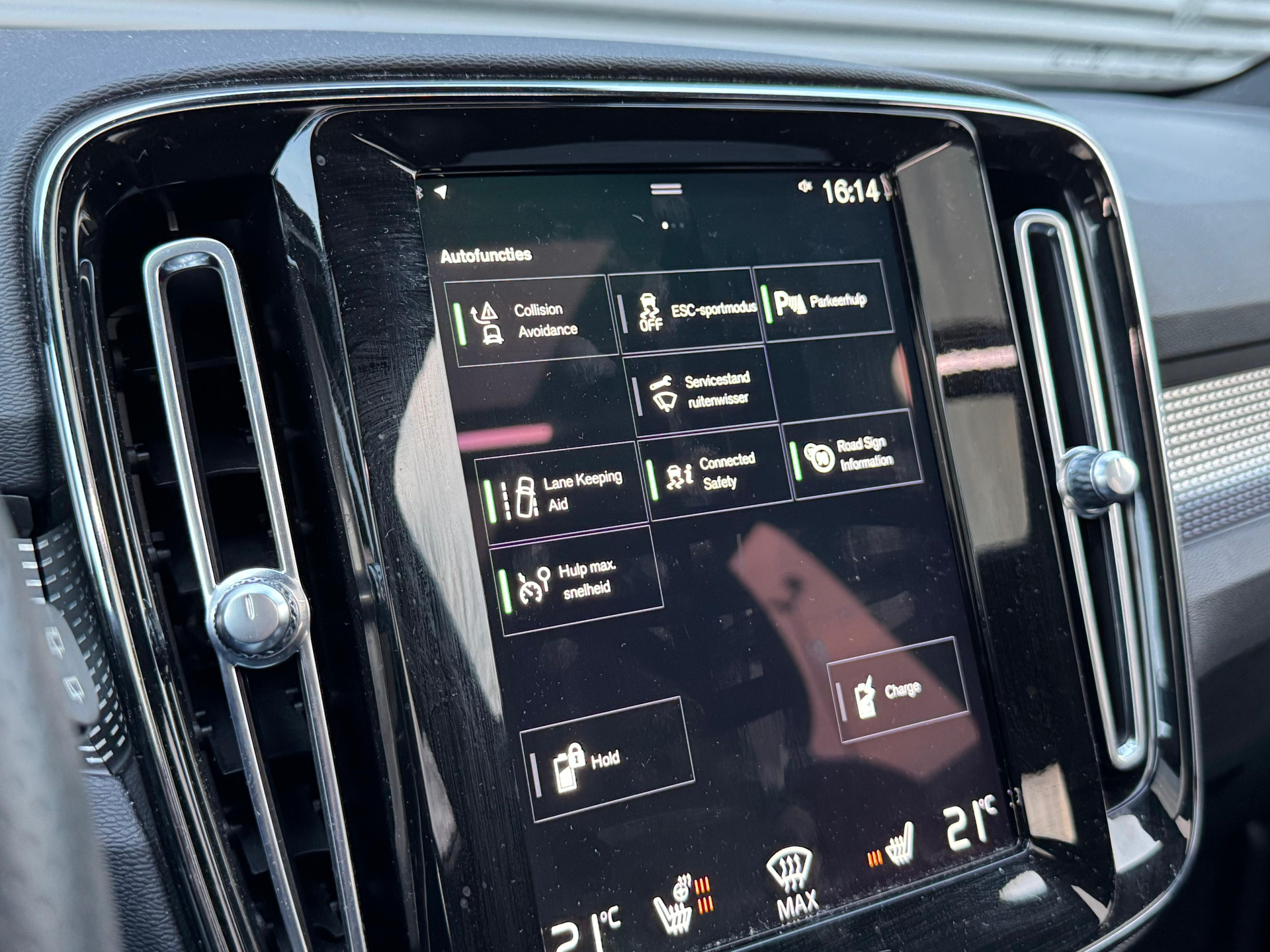 Zoals u mag verwachten van deze Volvo XC40 is hij uitgerust met een reeks aan actieve veiligheidssystemen. Bij de veiligheidssystemen van deze auto hoort ook de verkeersbord-detectie. Die leest tijdens het rijden als het ware met u mee en attendeert u op de significante verkeersborden langs en boven de weg. Een camera houdt de juiste koers binnen de rijstrook in de gaten en het Lane-keeping systeem corrigeert bij afwijkingen. Rijdt een ander voertuig in uw dode hoek dan waarschuwt het systeem met een signaal. Bovenop deze veiligheidsfeatures heeft deze Volvo bovendien forward collision warning system, hill hold functie, brake assist, vermoeidheidsherkenning en bandenspanningcontrolesysteem.