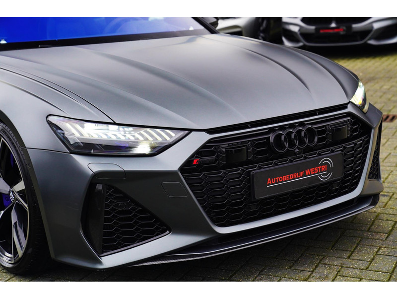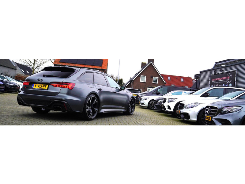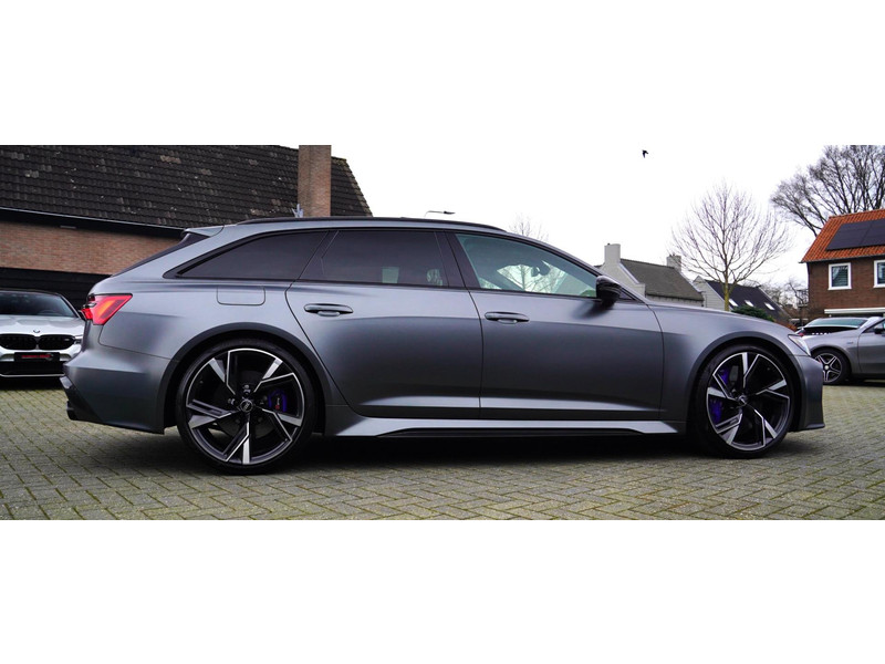 Nieuw op voorraad, Deze Brute Audi RS6 4.0 TFSI Quattro Dynamic PLUS uit het jaar 2020! Uitgevoerd met een mat grijze kleur, origineel af fabriek. Interieur is uitgevoerd in de kleur zwart met expressrode stiksels. Echt een unieke samenstelling.