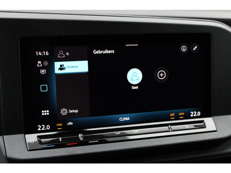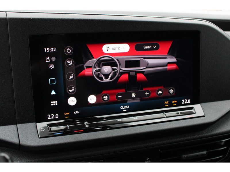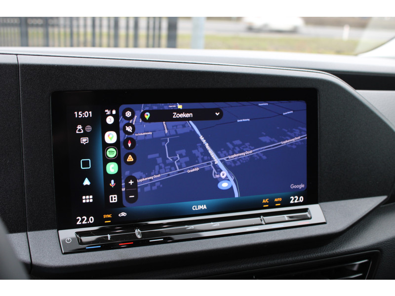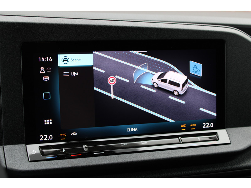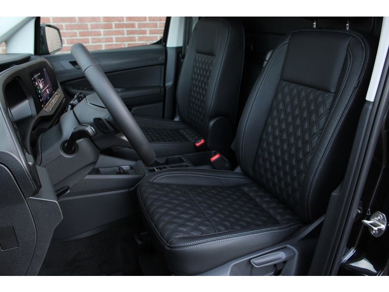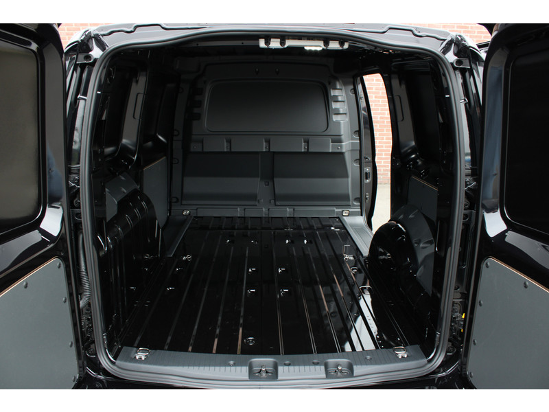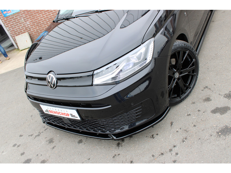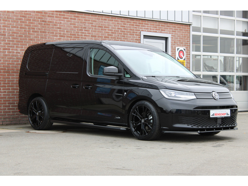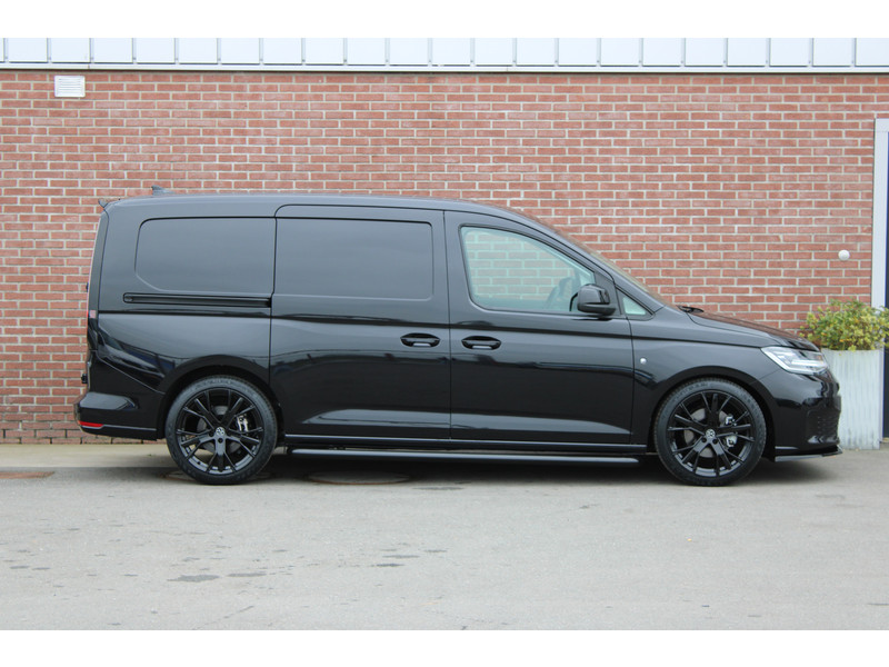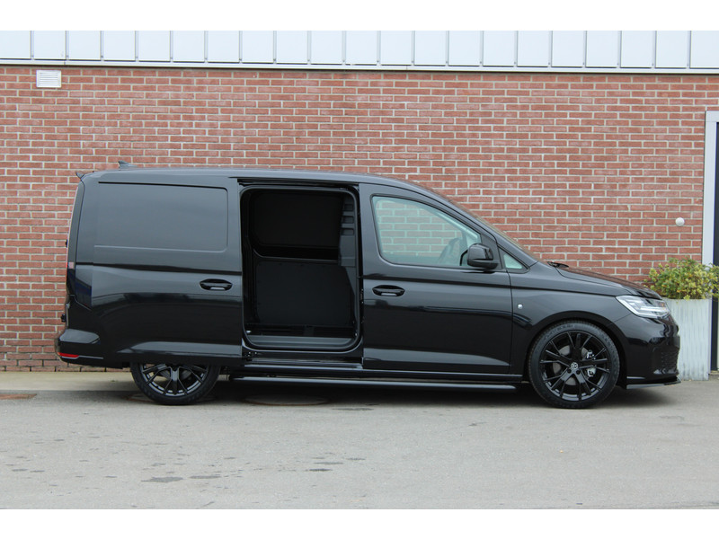 Een nieuwe Volkswagen Caddy Maxi met originele 122PK motor met automaat en een enkele schuifdeur met onder andere, Verlaagd onderstel, Front lip, Spoiler, 19 Inch lichtmetalen velgen, draadloze Apple carplay & Android auto, Lane assist en een mulitfunctioneel lederen stuurwiel..