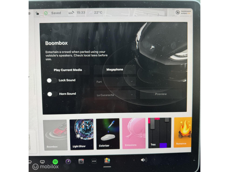 (bijv. zwarte spoiler, aluminium pedalen, zwarte turbine wieldoppen met rood logo, geluiddempende was voor de ruit, zwarte Tesla-logo’s op frunk, trunk en stuur)