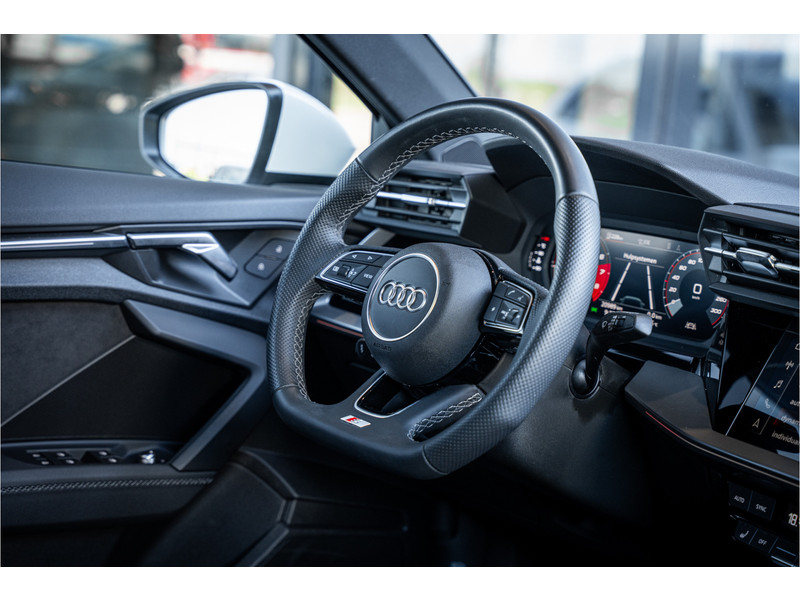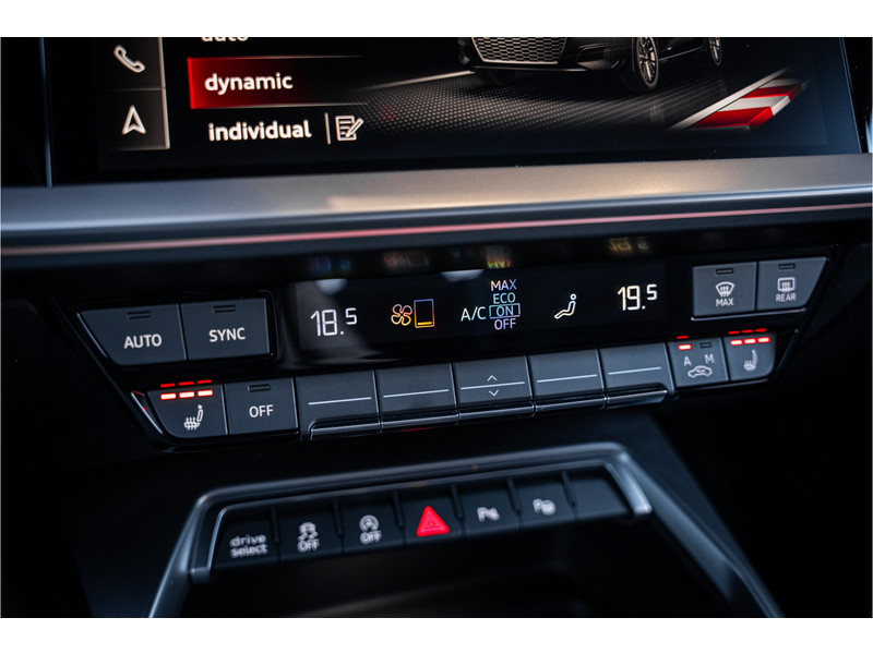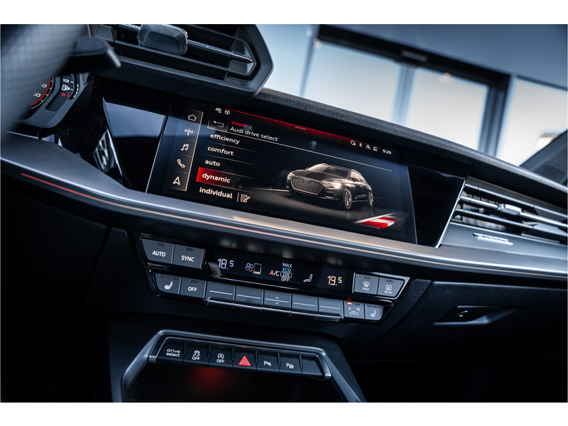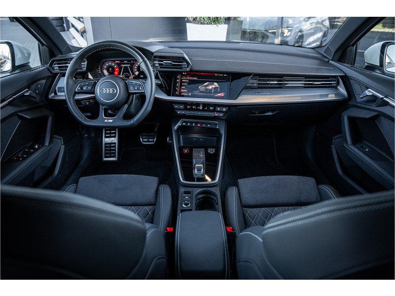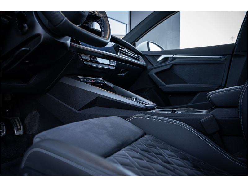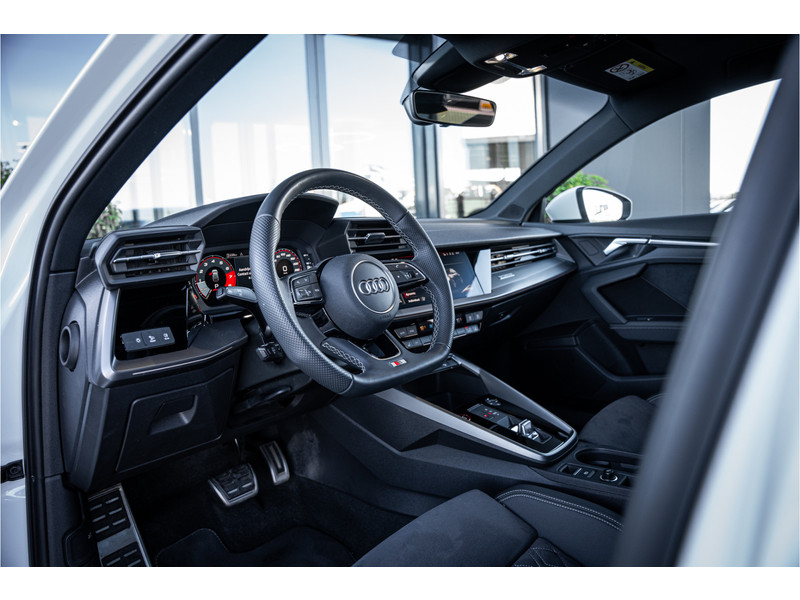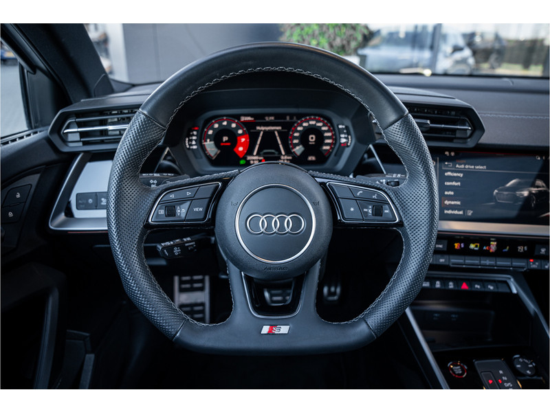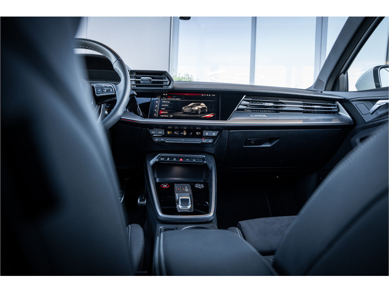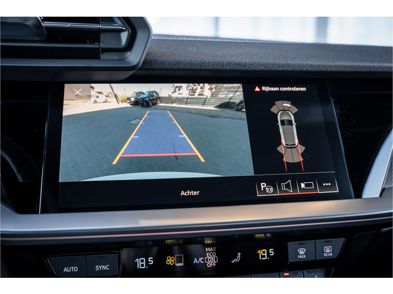 De hoogwaardige achteruitrijcamera en het display met hoge resolutie zorgen dat helemaal niets u meer ontgaat van wat er achter de auto gebeurt. Als u de adaptive cruise control inschakelt, regelt de auto zelf de snelheid en de afstand tot de auto voor u. Deze Audi S3 Sportback is voorzien van remote services. Via uw smartphone bedient u diverse functies ook op afstand en krijgt u informatie over de status van uw auto. Laat u onderweg niet afleiden, de bediening van het audio-installatiesysteem en ook het full map navigatiesysteem gaat met knoppen op het stuur. Natuurlijk is de audio-installatie voorzien van DAB-ontvangst. Onderweg laadt u uw smartphone snoerloos op met behulp van de draadloze oplaadmogelijkheid voor telefoons. Ook WIFI-hotspot, electronic climate control, sportstuur met schakelpaddels, regensensor en centrale deurvergrendeling met afstandsbediening horen tot de voorzieningen op deze auto.