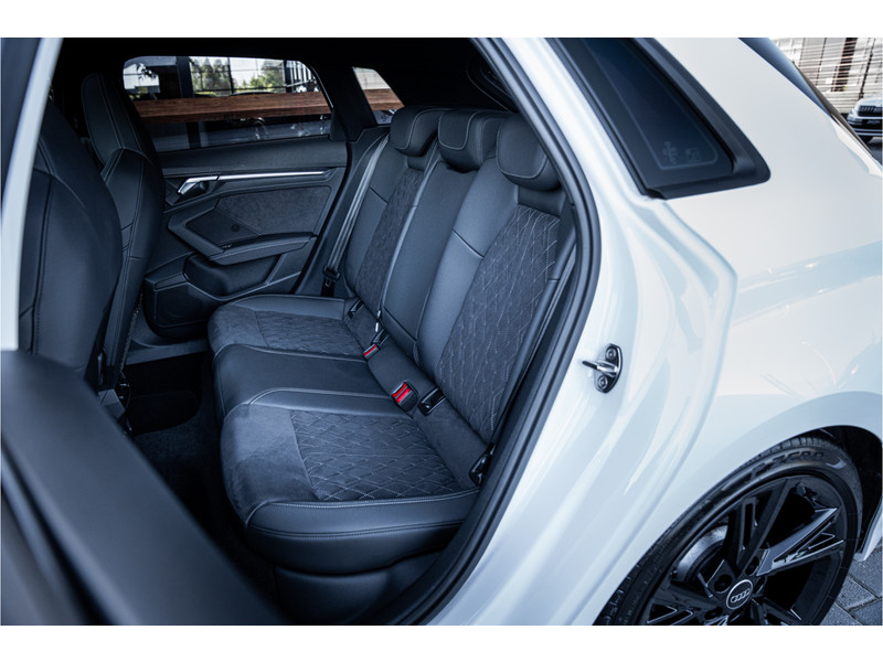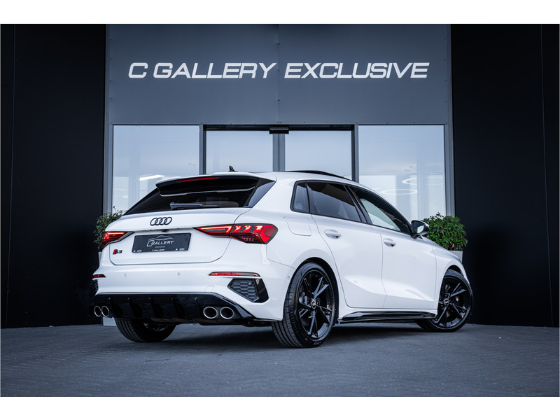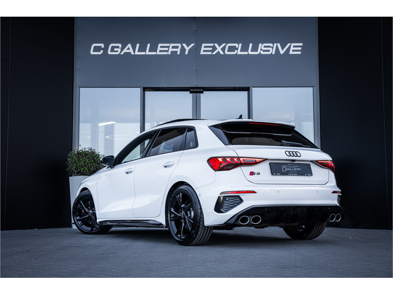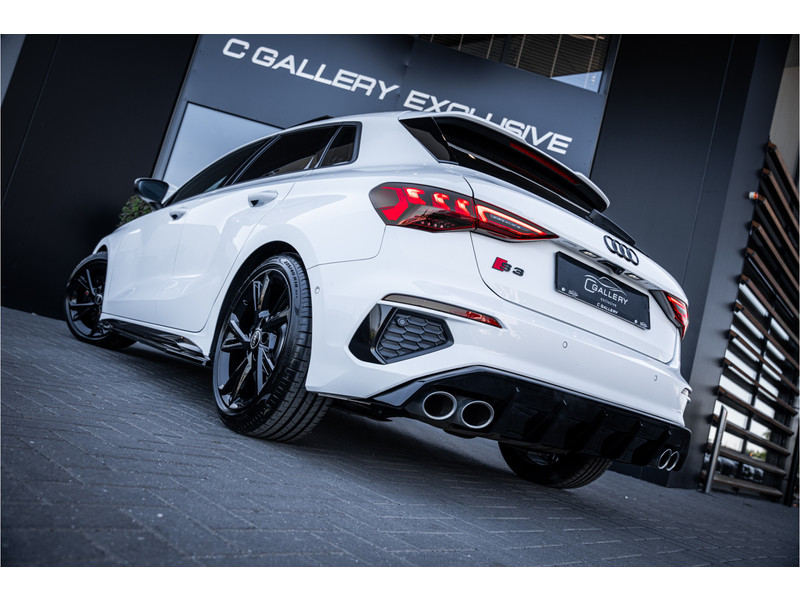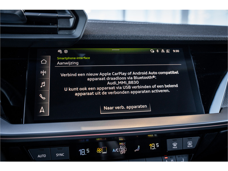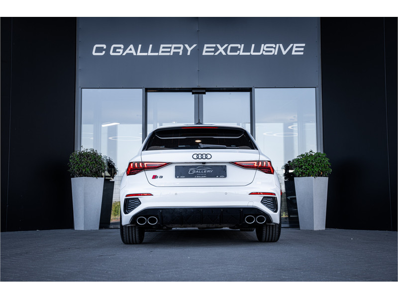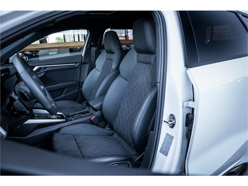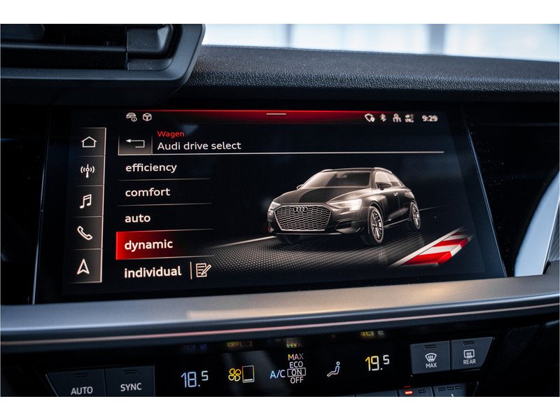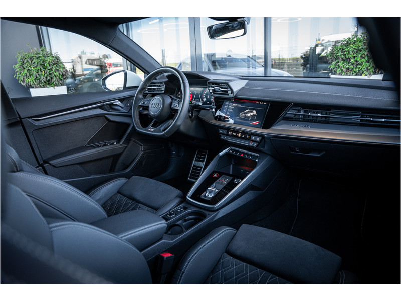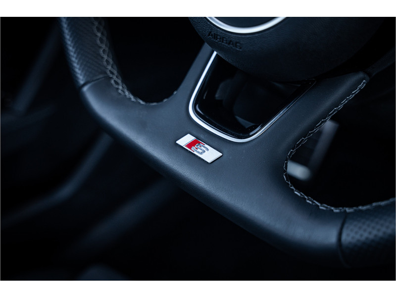 De hoogwaardige achteruitrijcamera en het display met hoge resolutie zorgen dat helemaal niets u meer ontgaat van wat er achter de auto gebeurt. Als u de adaptive cruise control inschakelt, regelt de auto zelf de snelheid en de afstand tot de auto voor u. Deze Audi S3 Sportback is voorzien van remote services. Via uw smartphone bedient u diverse functies ook op afstand en krijgt u informatie over de status van uw auto. Laat u onderweg niet afleiden, de bediening van het audio-installatiesysteem en ook het full map navigatiesysteem gaat met knoppen op het stuur. Natuurlijk is de audio-installatie voorzien van DAB-ontvangst. Onderweg laadt u uw smartphone snoerloos op met behulp van de draadloze oplaadmogelijkheid voor telefoons. Ook WIFI-hotspot, electronic climate control, sportstuur met schakelpaddels, regensensor en centrale deurvergrendeling met afstandsbediening horen tot de voorzieningen op deze auto.