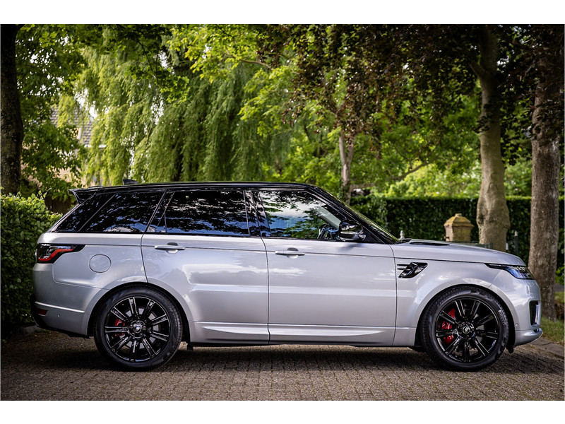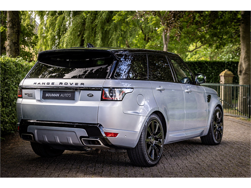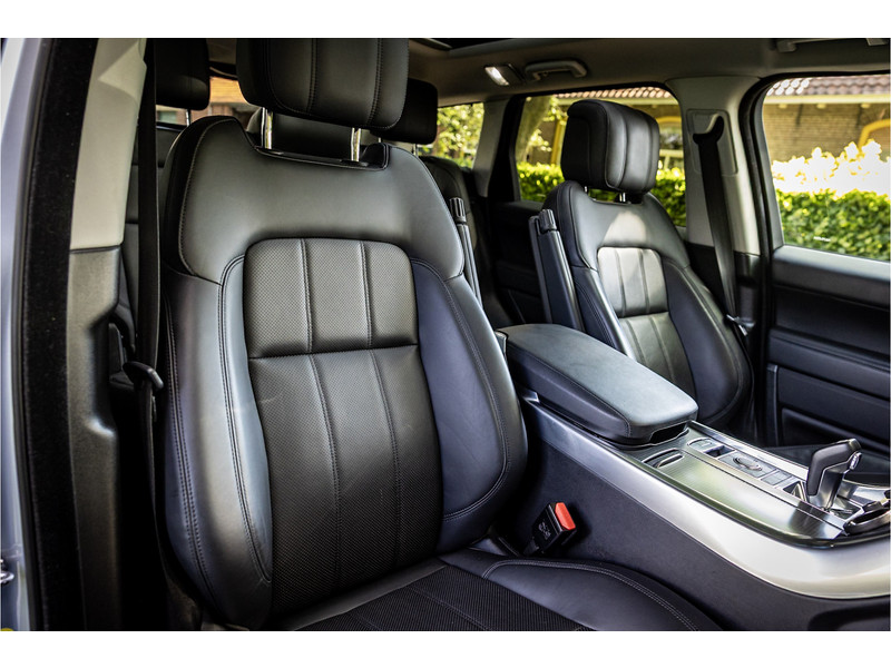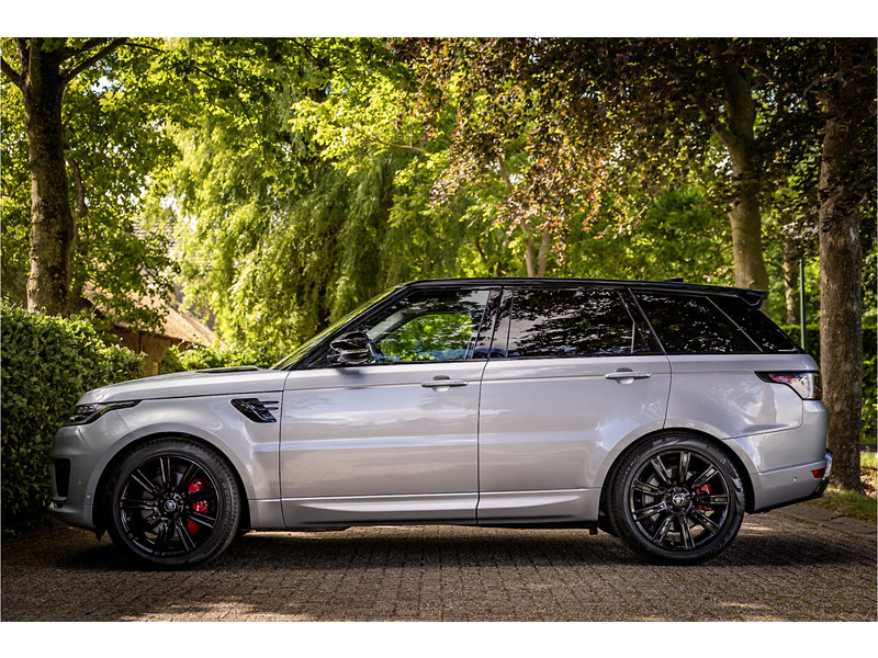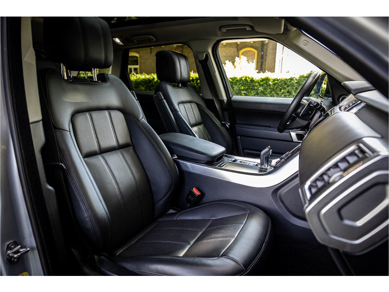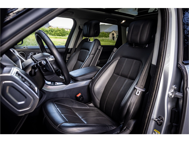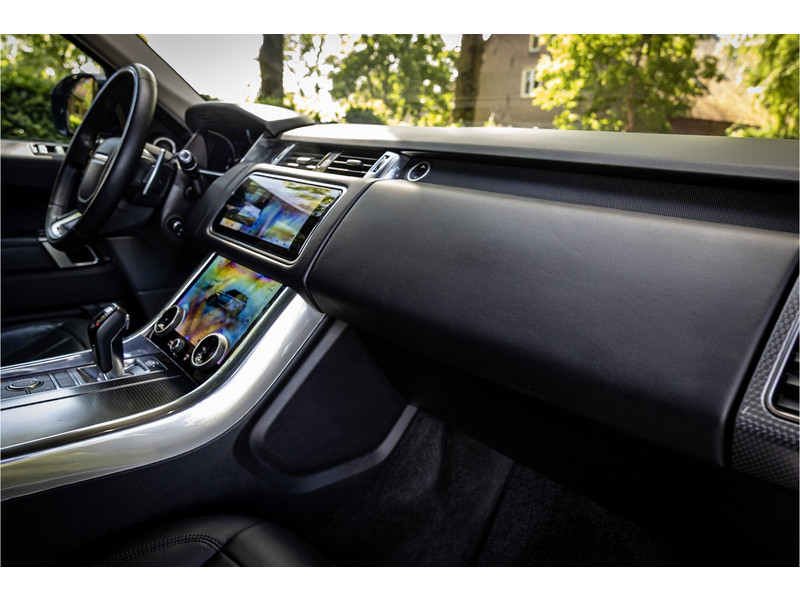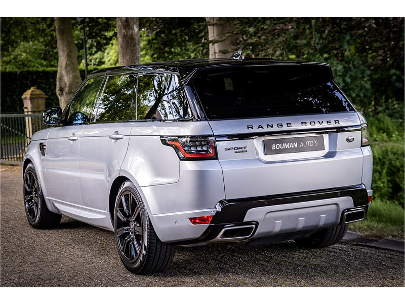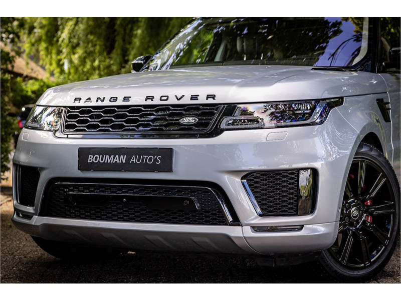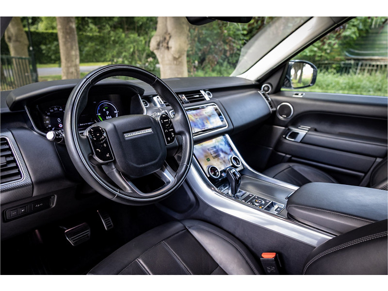 Fraaie Range Rover Sport HSE Dynamic Stealth met hybride aandrijflijn. Deze auto is volledig Land Rover dealer onderhouden. Lakkleur is Hakuba Silver metallic, het interieur is bekleed met Ebony Black leder. Als onderdeel van de Dynamic Stealth uitvoering zijn diverse exterieurdelen in hoogglans zwart uitgevoerd, zoals de spiegelkappen, air vents op de motorkap, side vents in de voorschermen, grille voorzijde, signature lijst op de achterklep en de woordmerken op achterklep en motorkap.