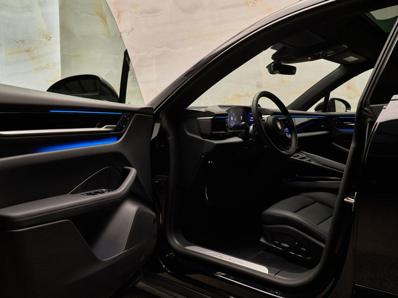 Deze Macan onderscheidt zich met 21-inch Macan Design wielen (54R), Dakrails aluminium zwart (3S2), hoogglans zwarte raamlijsten (QJ4) en Sideblades in exterieurkleur (6H1). Binnenin zorgen Porsche emblemen in de hoofdsteunen (3J7) en sfeerverlichting voor luxe accenten.