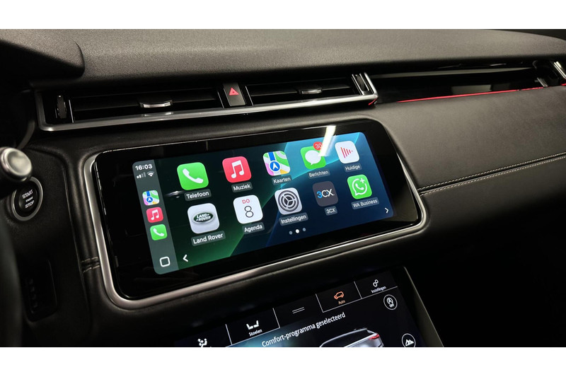 Deze Land Rover Range Rover Velar gaat met gemak nog vele, vele, vele tienduizenden kilometers mee. Energiek rijgedrag, fraaie uitstraling en een plezier om in te rijden, deze Land Rover Range Rover Velar. Met zijn benzinemotor en automatische transmissie is dit een prima auto voor nog vele kilometers. Een fraai lederen interieur, dat in daglicht baadt dankzij het elektrisch bediende glazen panorama dak. En voor 'handsfree' in- en uitladen vindt u aan de achterzijde de elektrisch bedienbare achterklep. Onderdeel van de uitgebreide uitrusting van deze auto is stoelverwarming. Dankzij de matrix LED-verlichting geven de koplampen ook in het donker daglicht. Ook 20 inch lichtmetalen velgen, adaptief dempingsysteem, trailer assistent, donker getint glas achter, in delen neerklapbare achterbank en LED-achterlichten horen tot de voorzieningen op deze auto.