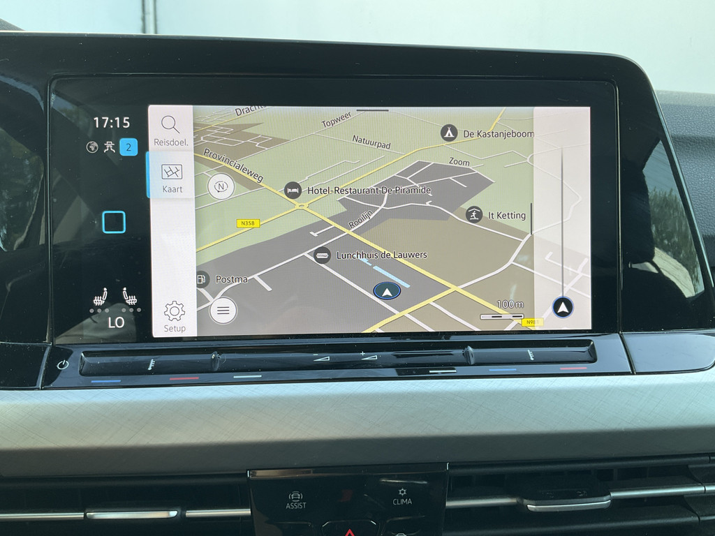 Voor het overzicht tijdens iedere rit is deze Volkswagen Golf voorzien van een gemakkelijk afleesbaar digitaal dashboard. Adaptive cruise control is veilig en comfortabel. De snelheidsregelaar houdt automatisch afstand tot het voertuig dat voor u rijdt. De speciale app verbindt met Connected Services, die de status van vitale functies bijhoudt en waarschuwt als u bijvoorbeeld moet tanken, de bandenspanning moet controleren of olie moet bijvullen. De bediening van het audiosysteem gebeurt met knoppen op het stuur. De audio is overigens voorzien van dab-radio voor een altijd heldere ontvangst. Telefoonaccu in het rood? Laad 'm simpel op met de draadloze oplaadmogelijkheid voor telefoons. U bent in deze Volkswagen ook voorzien van achteropkomend verkeer waarschuwing, kruisend verkeer detectie, automatische airconditioning, parkeersensoren achter en lederen stuur.
