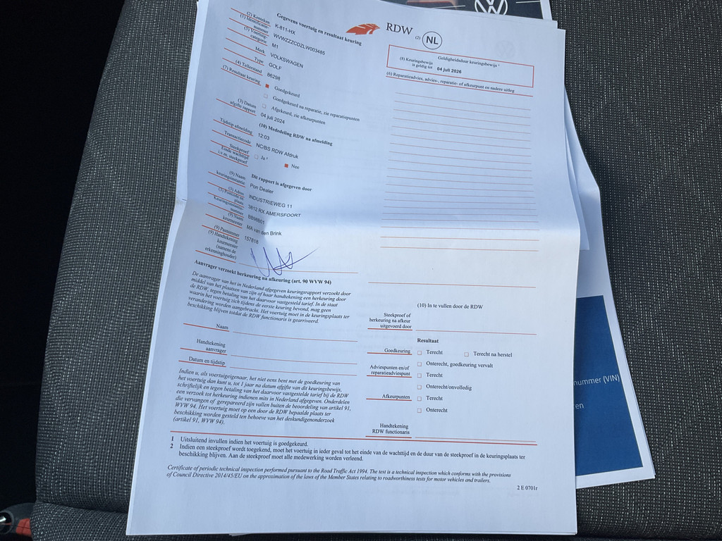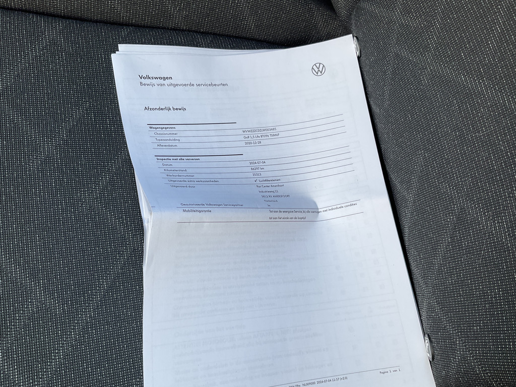 - Onderhoudsboekje aanwezig