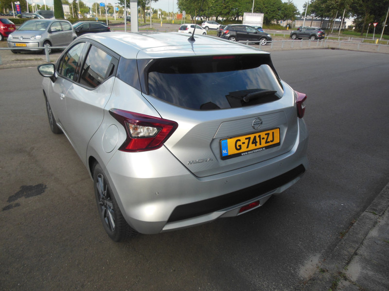 Klein? Wij zeggen liever slim en compact. Intelligente indeling, handige afmetingen en niet-te-geloven voordelig in gebruik en onderhoud. Noem dat maar klein! Hij rijdt lekker, deze Nissan. Pittig ook. De uitmonstering van deze auto wordt gecompleteerd door onder meer 16 inch lichtmetalen velgen, donker getint glas achter, elektrisch bedienbare ramen achter, elektrisch inklapbare buitenspiegels, LED-dagrijverlichting en in delen neerklapbare achterbank.