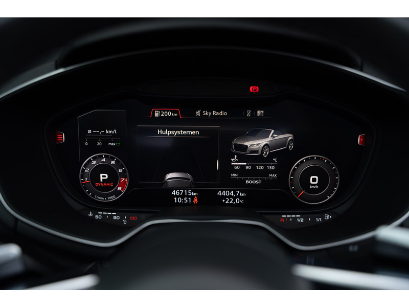 Zoals u mag verwachten van deze Audi TT Roadster is hij uitgerust met een reeks aan actieve veiligheidssystemen. Indien u onbedoeld de rijstrook lijkt te verlaten, reageert het Lane-keeping systeem meteen en corrigeert.