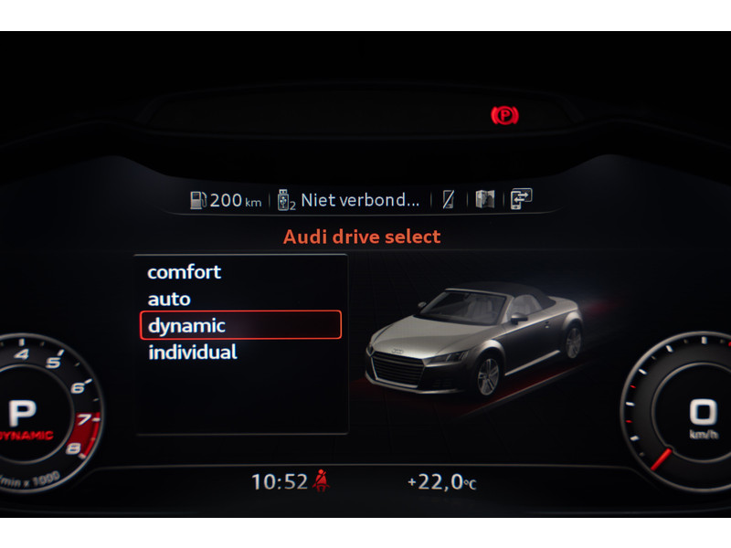Zodra de zon zich laat zien, kunt u heerlijk genieten achter het stuur van deze cabriolet. Deze Audi TT Roadster maakt een voortreffelijke indruk. Hiermee mag je gezien worden in de stad én op de weg! En heel aantrekkelijk is de stoere, sportieve S-Line styling. De krachtige benzinemotor staat garant voor uitstekende prestaties. Stoelverwarming is een plezierige extra in de auto. Binnen de kortste tijd is uw stoel behaaglijk warm. In deze Audi profiteert u onder andere ook van: 20 inch lichtmetalen velgen, LED koplampen, sportonderstel, warmtewerend glas, LED-achterlichten en verstelbare lendensteunen.