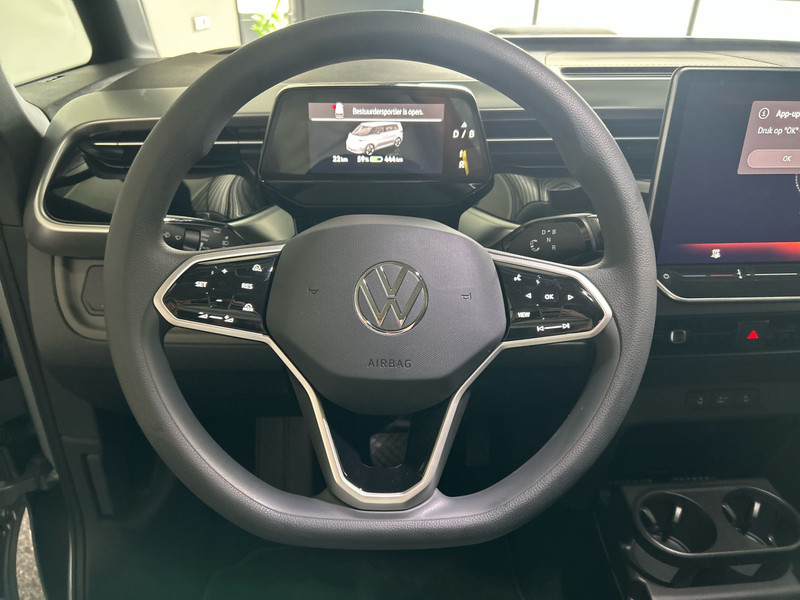 Achteruitrijden en inparkeren worden een eitje dankzij de achteruitrijcamera. Adaptive cruise control is een comfortabele en veilige optie. Het systeem reguleert de snelheid en houdt automatisch afstand tot uw voorligger. Had u de auto nou wel afgesloten? Met Connected Services checkt u het overal en altijd. In deze ID. Buzz vindt u schakelaars op het stuur om het audio-installatiesysteem met dab-ontvangst te bedienen. Telefoon onderweg aan de lader? Daar komt geen kabeltje aan te pas, want deze Volkswagen ID. Buzz is voorzien van een draadloze oplaadmogelijkheid voor telefoons. Wat u ook in deze auto kunt vinden zijn automatische airconditioning, keyless entry en centrale deurvergrendeling met afstandsbediening.