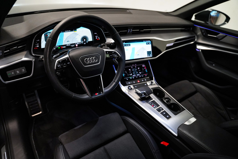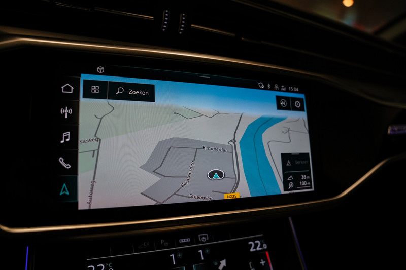 Een prachtige Audi A6 50e hybrid S-Line afkomstig van de Audi dealer met o.a. zwart optiek, led, 20 inch, leder/alcantara sportstoelen, panorama dak, Bang & Olufsen audio, adaptive cruise control, sfeerverlichting, apple car play en een elektrische klep. *Wij voorzien de auto van een kosteloze achteruitrijcamera (origineel).