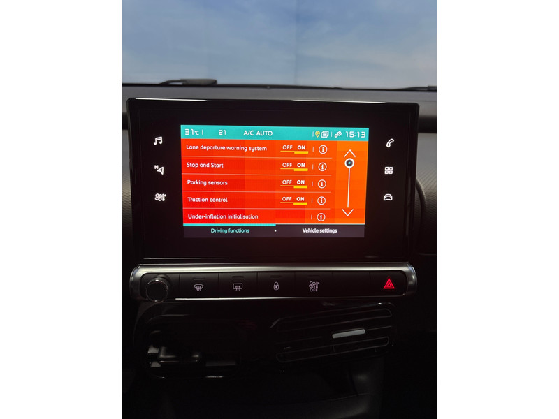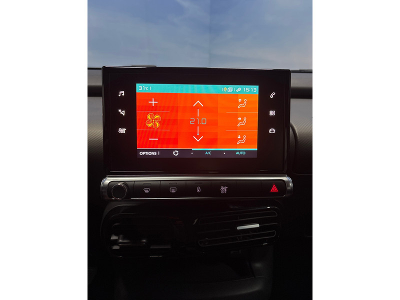 Hoe is het met de banden, de accu en andere onderdelen? Connected Services maakt het inzichtelijk, 24/7 via de app. Houdt uw ogen op de weg en uw handen aan het stuur. Het audiosysteem en het navigatiesysteem bedient u vanaf het stuurwiel en met spraakbediening. Tot de standaard uitrusting van deze auto hoort ook automatische airconditioning. De parkeersensoren registreren alles. Ook dat ene paaltje dat net buiten uw gezichtsveld valt. Om de veiligheid onderweg te verhogen, heeft deze Citroen zowel een automatisch inschakelbare verlichting als een regensensor aan boord, zodat hij zelf de verlichting en de ruitenwissers kan inschakelen. Wat u ook in deze auto kunt vinden zijn cruise control, automatisch dimmende binnenspiegel, lederen stuur en centrale deurvergrendeling met afstandsbediening.