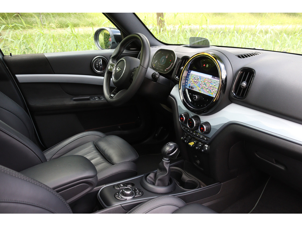 Mini Countryman met de krachtige en zuinige Plug-in hybride motor met een gecombineerd vermogen van 162kW/221pk. In de zeer luxe en sportieve Untamed Edition uitvoering met het elektrisch bedienbare panoramadak en het Premium Plus pakket met zeer veel opties, onder andere: Elektrisch bedienbare lederen sportstoelen met memory voor de bestuurder, origineel navigatiesysteem plus, adaptieve cruise control, parkeersensoren voor en achter met parkeerhulp en de originele achteruitrijcamera, Keyless entry/start, elektrische achterklep, Apple CarPlay, Head-up display, stoelverwarming en voorruitverwarming, LED verlichting met Union Jack achterlichten, ambiente verlichting interieur, originele 18" lichtmetalen velgen, draadloze telefoonlader, Harman Kardon geluidssysteem, origineel alarmsysteem klasse 3, Virtual Cockpit, getint glas achter en een automatisch dimmende binnenspiegel. Deze auto wordt geleverd inclusief de originele fabrieksgarantie.