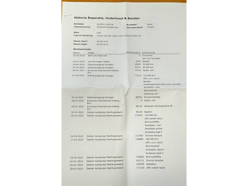 - Onderhoudsboekje aanwezig