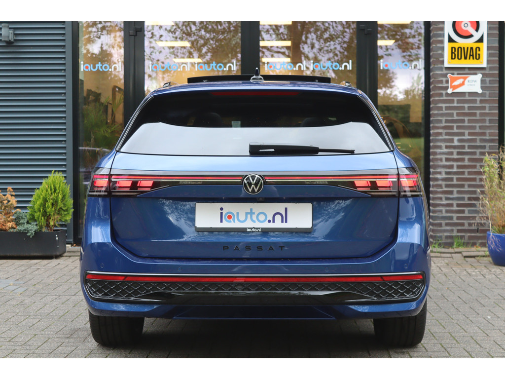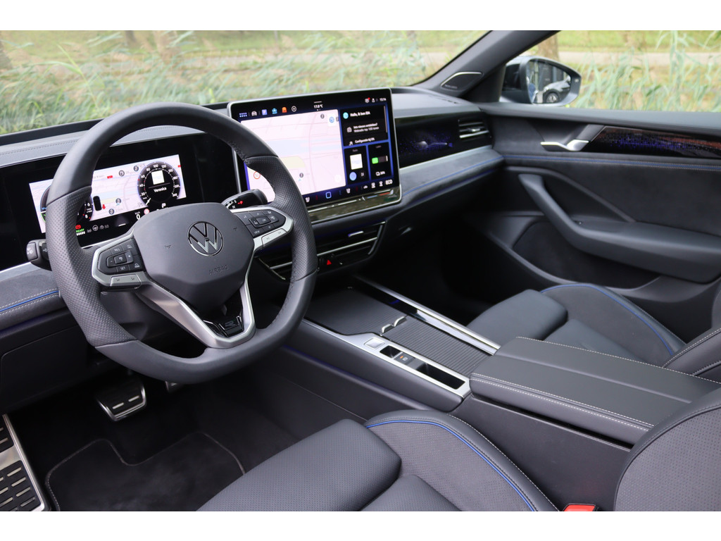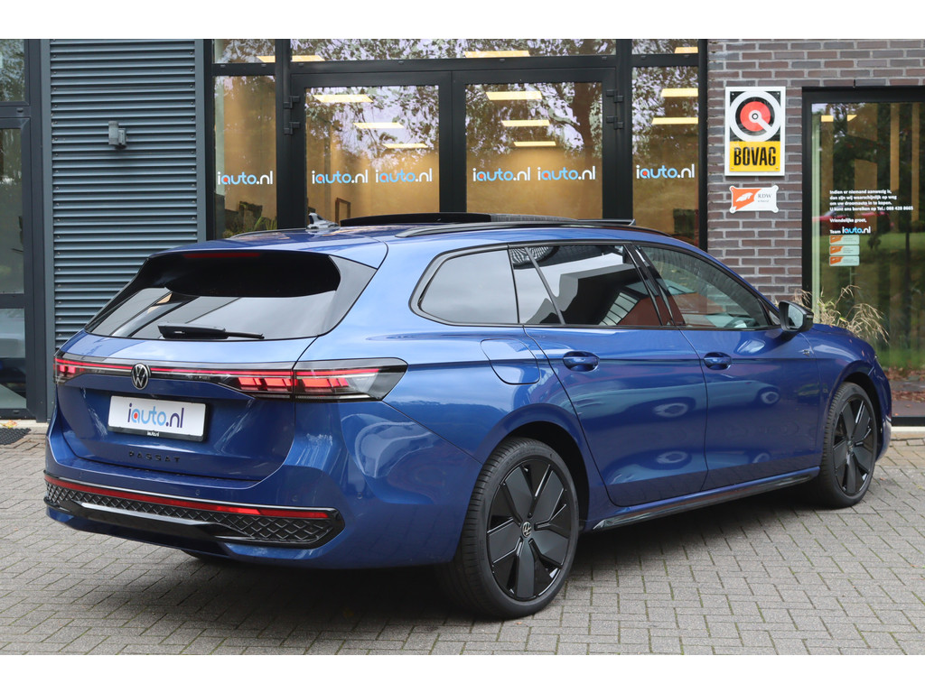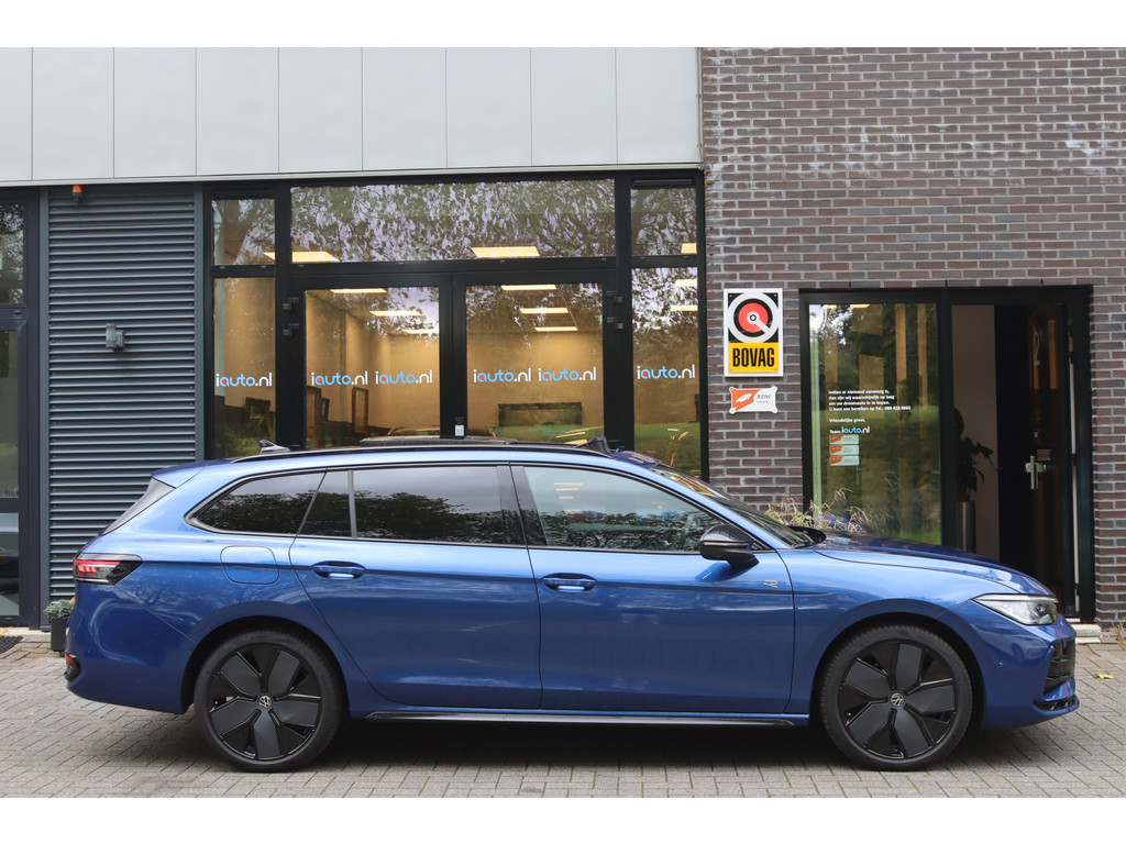 Direct uit voorraad leverbaar met de originele verlengde fabrieksgarantie voor 5 jaar of maximaal 100.000 kilometer. Het nieuwe model Passat met de meest krachtige en zuinige 1.5 eHybrid 200kW/272pk Plug-in Hybride motor. In de zeer luxe en sportieve R-Line Edition uitvoering met het elektrisch bedienbare panoramadak, het Black Style Pakket, het Interieur Plus Pakket en de wegklapbare trekhaak. Daarnaast voorzien van zeer veel opties, onder andere: IQ.Light Matrix LED verlichting met LED Grill en dynamische knipperlichten voor en achter, navigatiesysteem Discover Pro Max, achteruitrijcamera met 360 Area View, Head-up display, Harman Kardon Sound Systeem, elektrisch bedienbare Lederen R-Line sportstoelen met memory en met massageprogramma's, cruise control adaptief met stop&go en stuurhulp, zonnescherm zijruiten, geluidsisolerend glas, stoelverwarming voor en achter, stoelventilatie voor, stuurverwarming, voorruitverwarming, Keyless entry/start, Adaptive onderstel (DCC), originele 19" lichtmetalen velgen "Leeds Black", Ambienteverlichting interieur en een origineel alarmsysteem klasse 3.