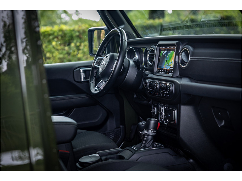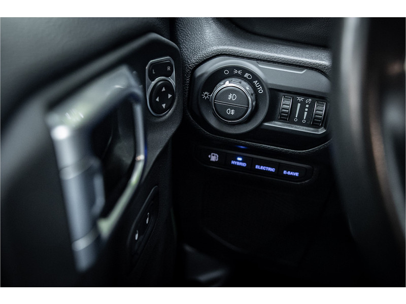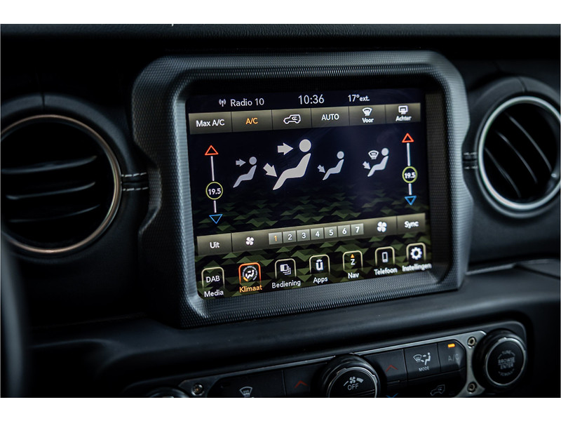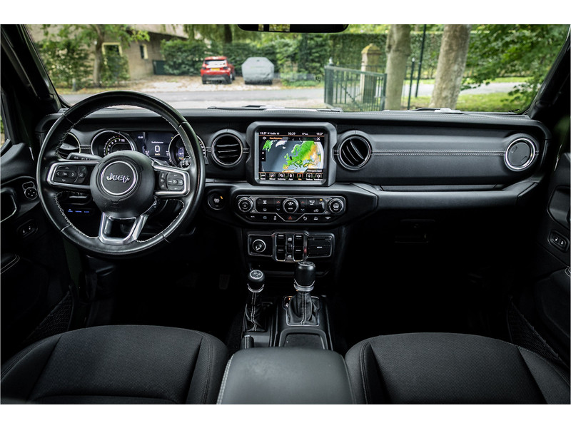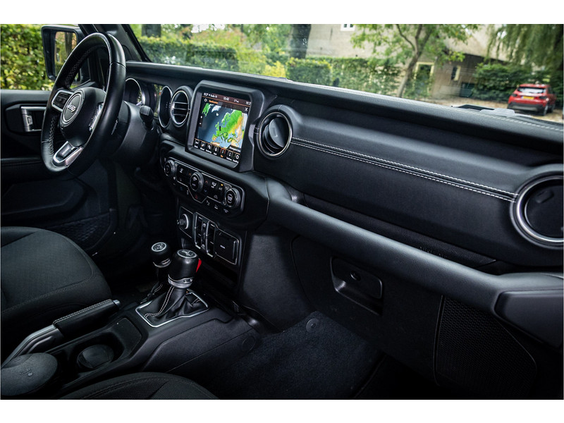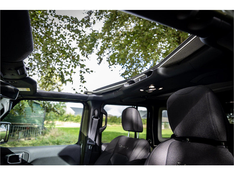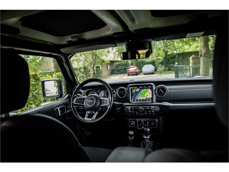 Tot de verdere uitrusting behoort adaptive cruise control met stop, keyless entry, dode hoek assistent, 8.4" touchscreen navigatie met Apple Carplay en Android Auto, Alpine Audio systeem met 9 speakers, LED koplampen met auto high beam functie, camera achter, dual zone klimaatregeling, 17" lichtmetalen velgen, parkeersensoren voor en achter, torx tool kit voor verwijdering van deuren en dak en omklappen voorruit en volwaardig reservewiel op achterklep.