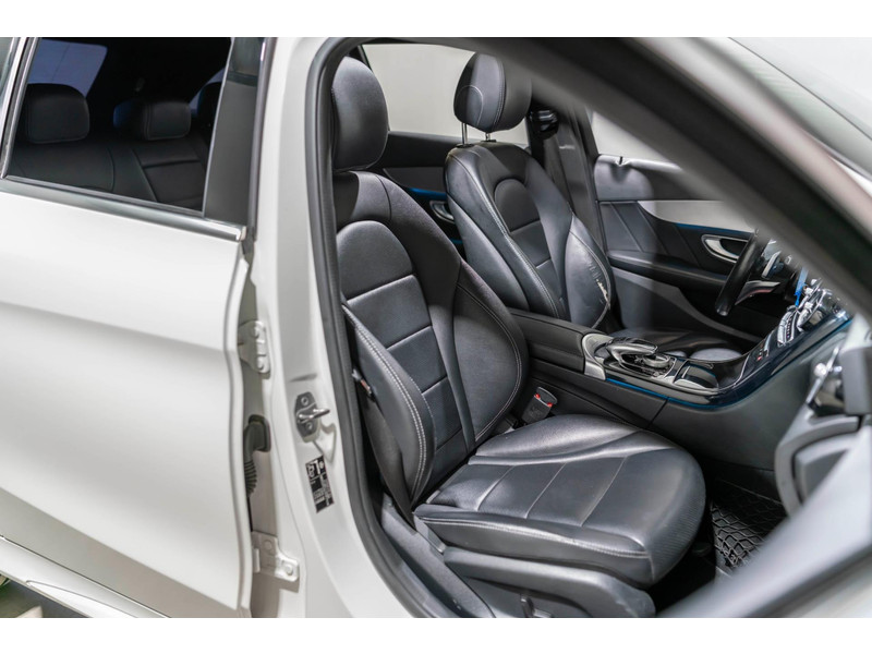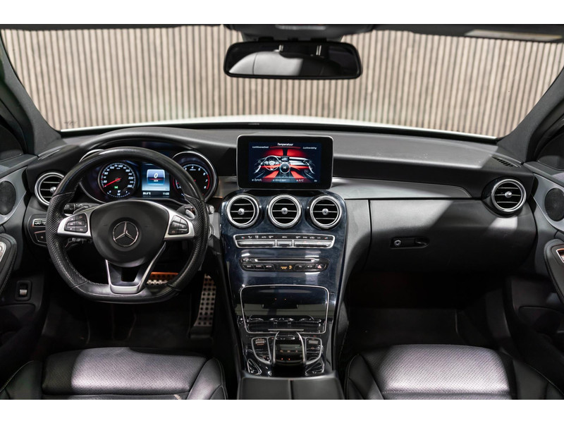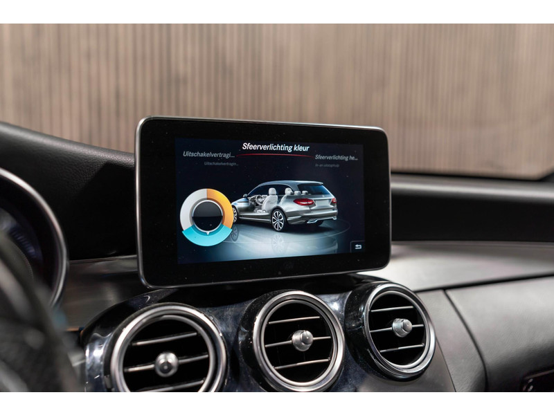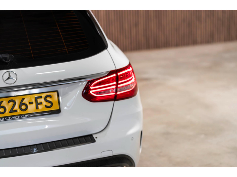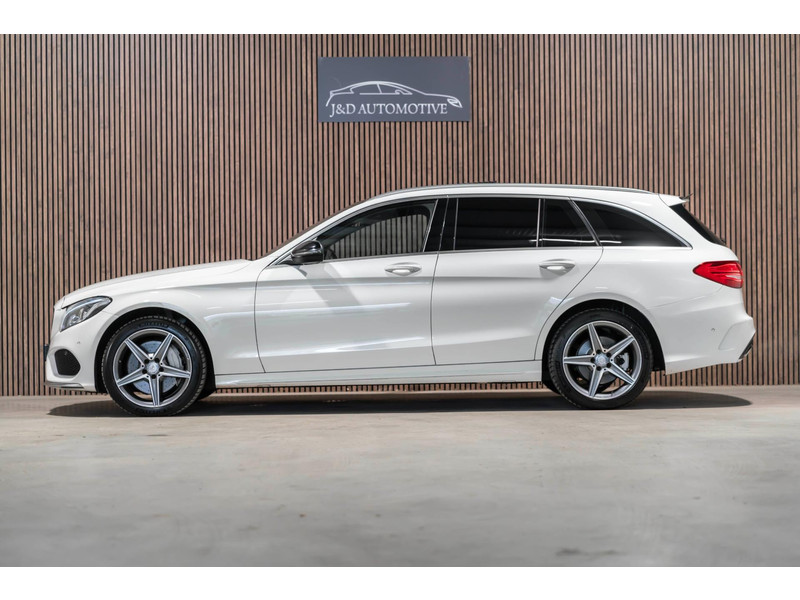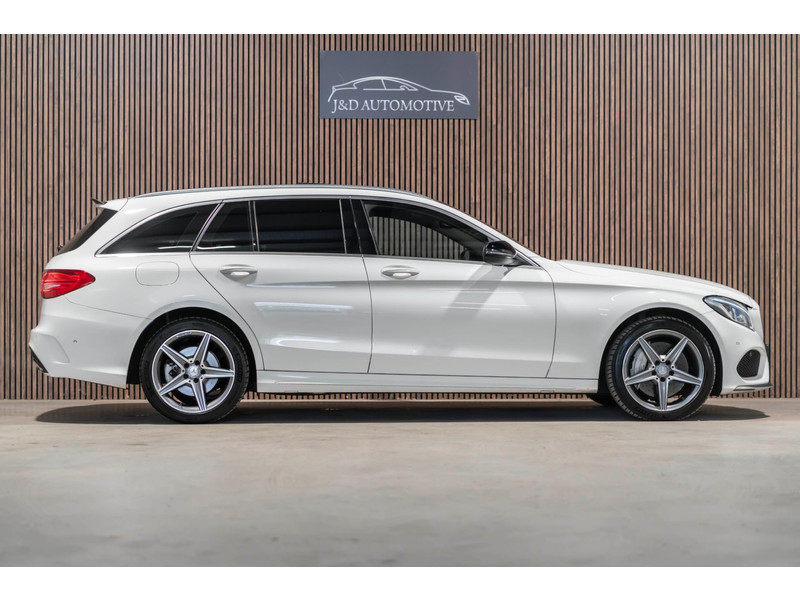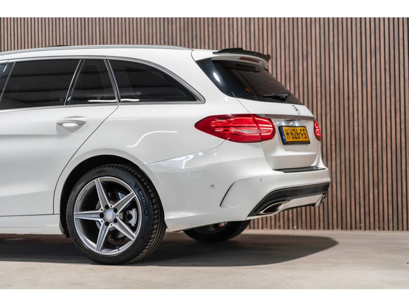 Alle technologie in de Mercedes-Benz C-klasse Estate is er op gericht om uw rit veilig en gemakkelijk te laten verlopen. Houdt u van een sportieve, dynamische uitstraling? Dan komt de AMG-styling als geroepen. De krachtige motor geeft deze Mercedes-Benz uitstekende prestaties. Deze Mercedes-Benz C-klasse Estate is luxe afgewerkt. Kijk maar naar het lederen interieur! Dankzij de elektrische stoelbediening is het gemakkelijk om de optimale zitpositie te vinden. Laat de zon maar schijnen door het elektrisch bediende glazen panoramadak. De elektrisch bedienbare achterklep opent met een druk op de knop. Bij de rijke uitrusting horen ook 18 inch lichtmetalen velgen, LED koplampen, AMG-styling, sportonderstel, halflederen bekleding en warmtewerend glas.