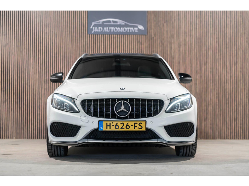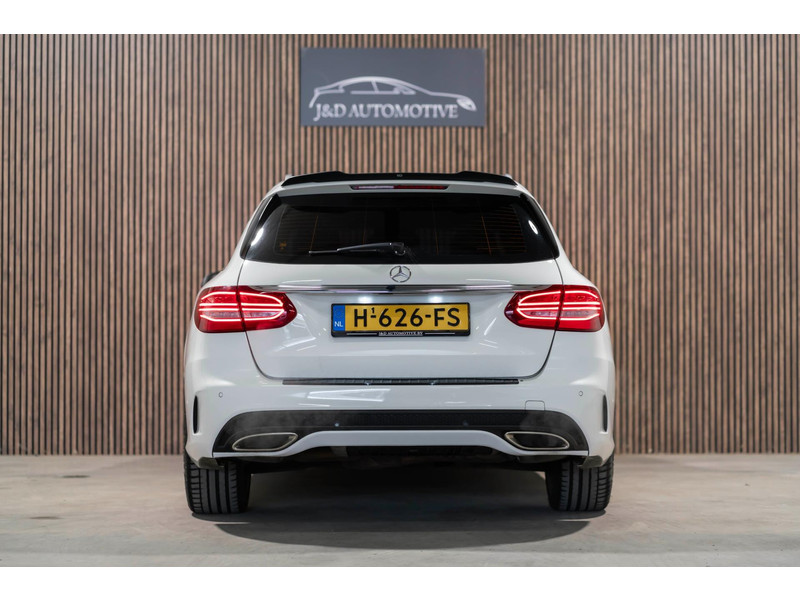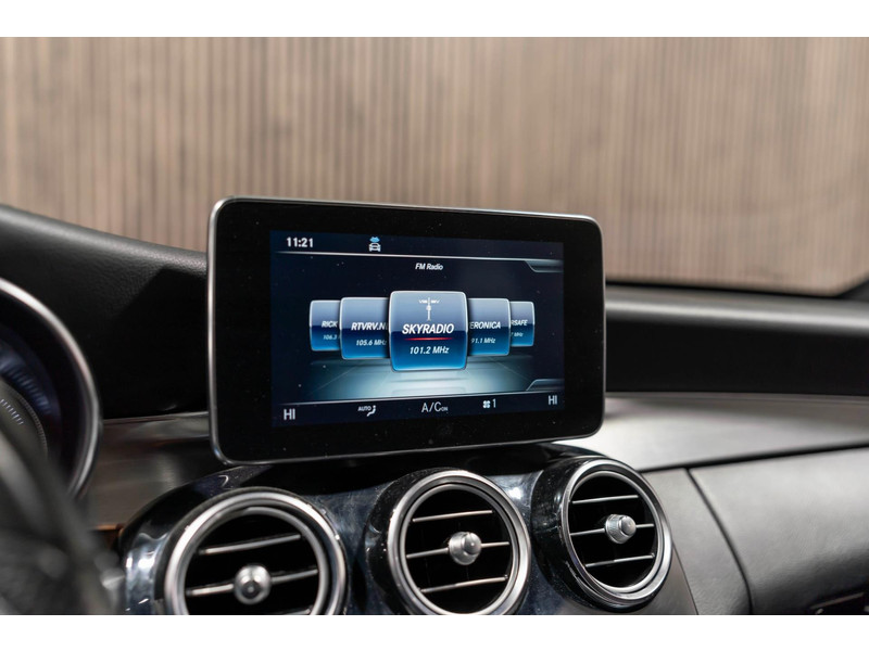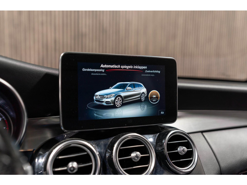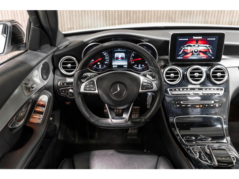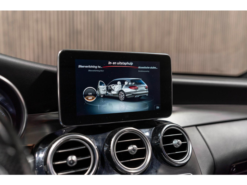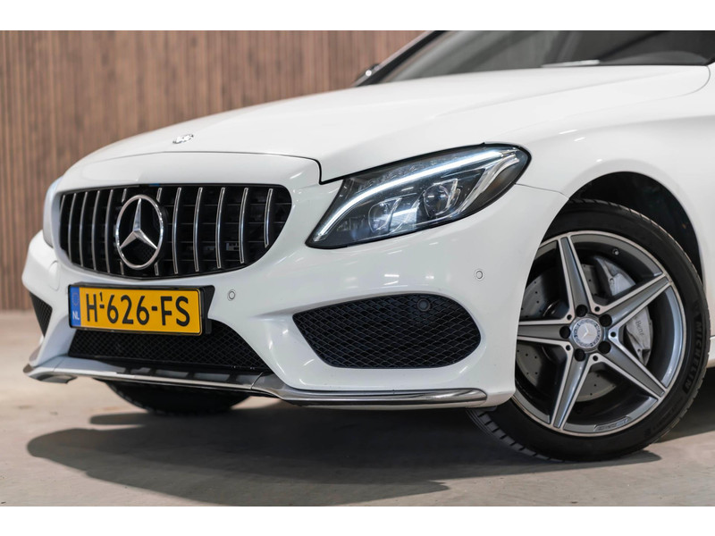 Alle technologie in de Mercedes-Benz C-klasse Estate is er op gericht om uw rit veilig en gemakkelijk te laten verlopen. Houdt u van een sportieve, dynamische uitstraling? Dan komt de AMG-styling als geroepen. De krachtige motor geeft deze Mercedes-Benz uitstekende prestaties. Deze Mercedes-Benz C-klasse Estate is luxe afgewerkt. Kijk maar naar het lederen interieur! Dankzij de elektrische stoelbediening is het gemakkelijk om de optimale zitpositie te vinden. Laat de zon maar schijnen door het elektrisch bediende glazen panoramadak. De elektrisch bedienbare achterklep opent met een druk op de knop. Bij de rijke uitrusting horen ook 18 inch lichtmetalen velgen, LED koplampen, AMG-styling, sportonderstel, halflederen bekleding en warmtewerend glas.