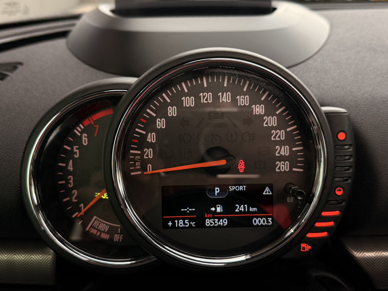 Zoals u mag verwachten van deze MINI Clubman is hij uitgerust met een reeks aan actieve veiligheidssystemen. Vermoeidheidsherkenning is een systeem dat met verschillende sensoren tekenen van vermoeidheid bij de chauffeur waarneemt. Deze krijgt tijdig een waarschuwing, wat ongelukken kan voorkomen. In deze MINI vinden we verder een head-up display, hill hold functie en bandenspanningcontrolesysteem.
