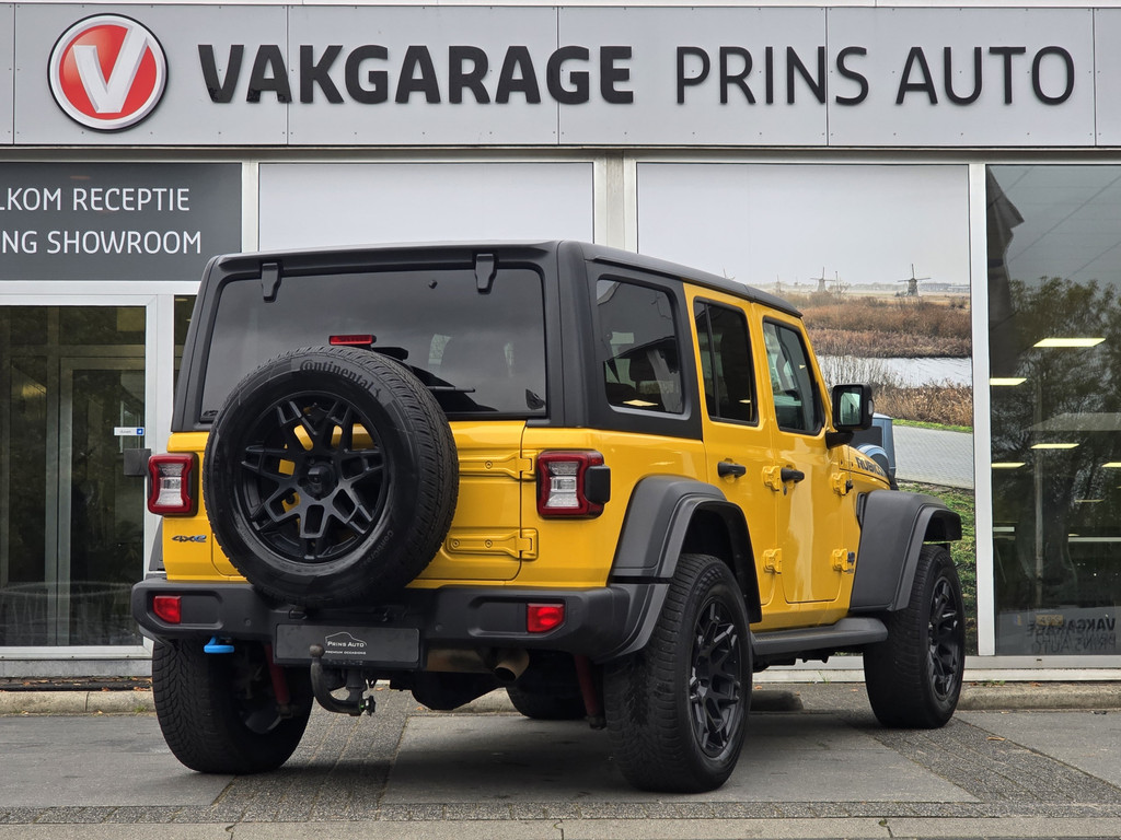 Stap in de wereld van avontuur met deze Jeep Wrangler Unlimited 4xe Rubicon 380 uit 2021 — een icoon dat kracht, stijl en innovatie moeiteloos combineert. Met slechts 80.443 kilometer op de teller is deze plug-in hybride klaar voor vele nieuwe ontdekkingsritten.
